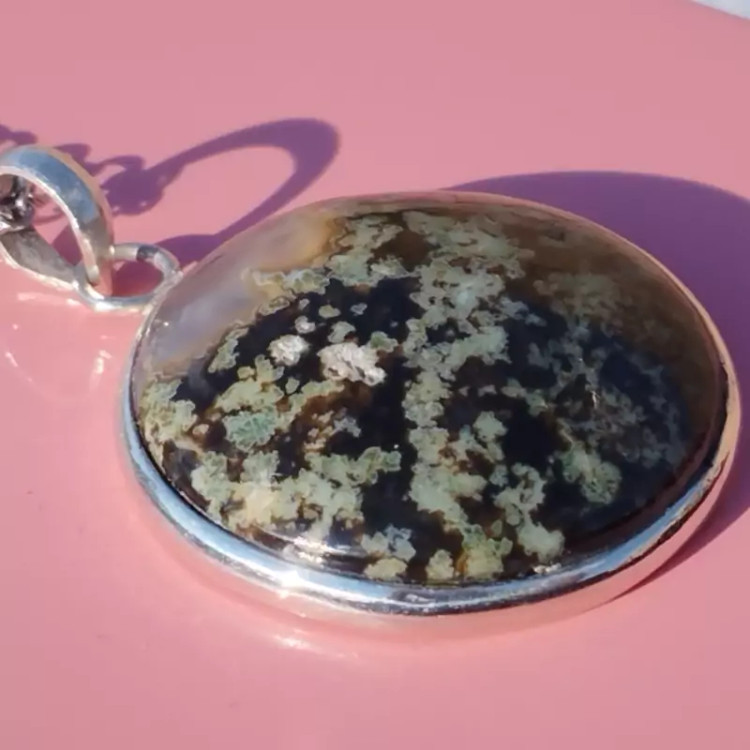 گردن آویز نقره زنانه مردانه عقیق منظره ای سبز صددرصد طبیعی با ضمانت مکتوب اصالت،برند دُرسیم