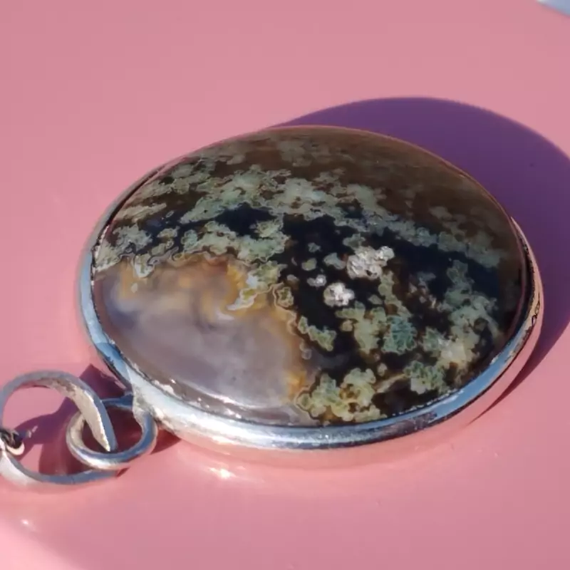 گردن آویز نقره زنانه مردانه عقیق منظره ای سبز صددرصد طبیعی با ضمانت مکتوب اصالت،برند دُرسیم