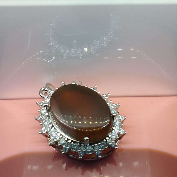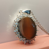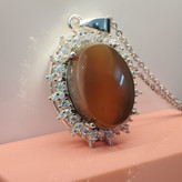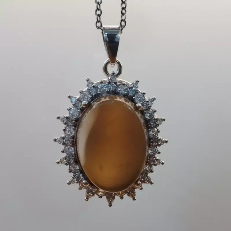 گردن آویز نقره زنانه با نگین اتمی،عقیق خرمایی صددرصد طبیعی با ضمانت مکتوب اصالت،برند دُرسیم