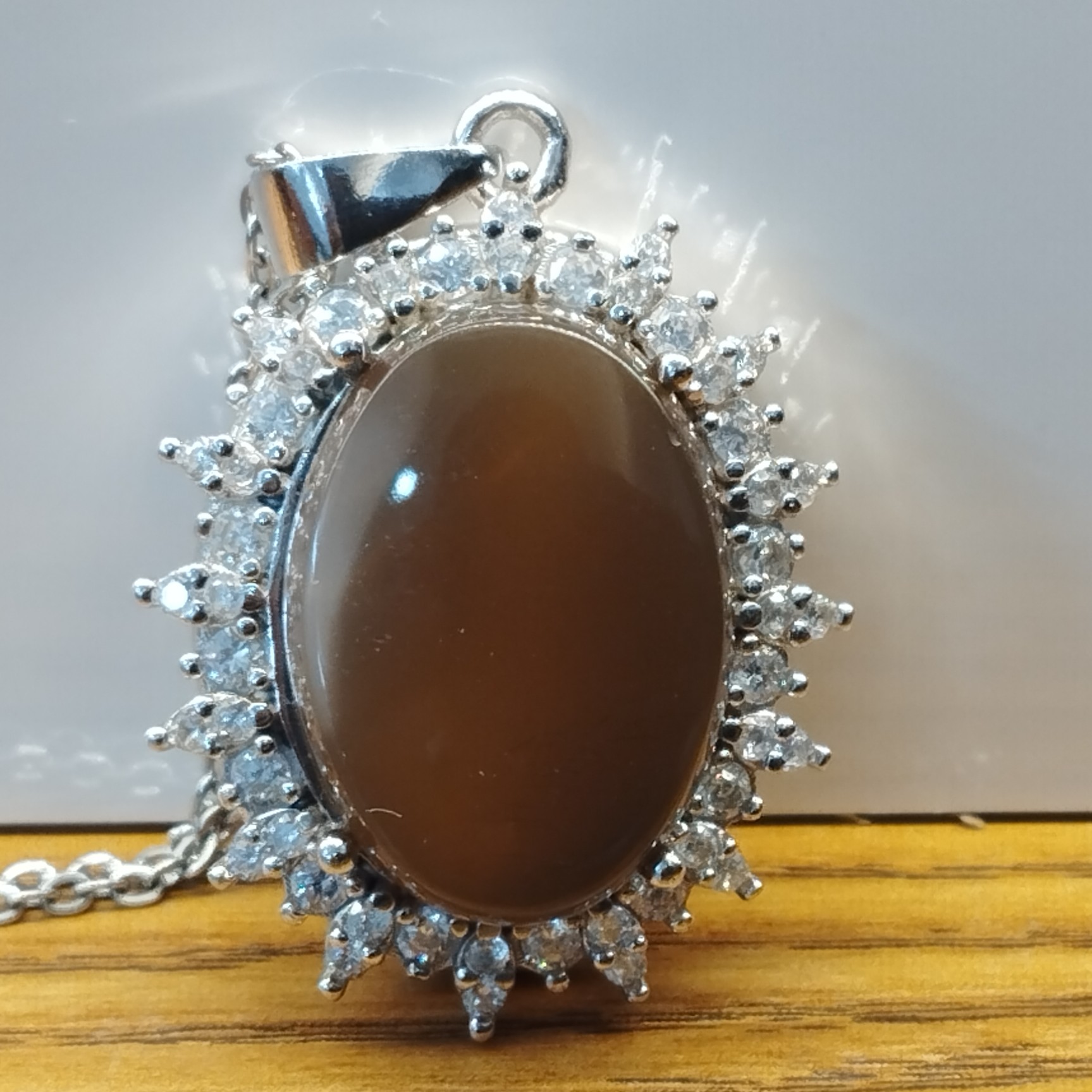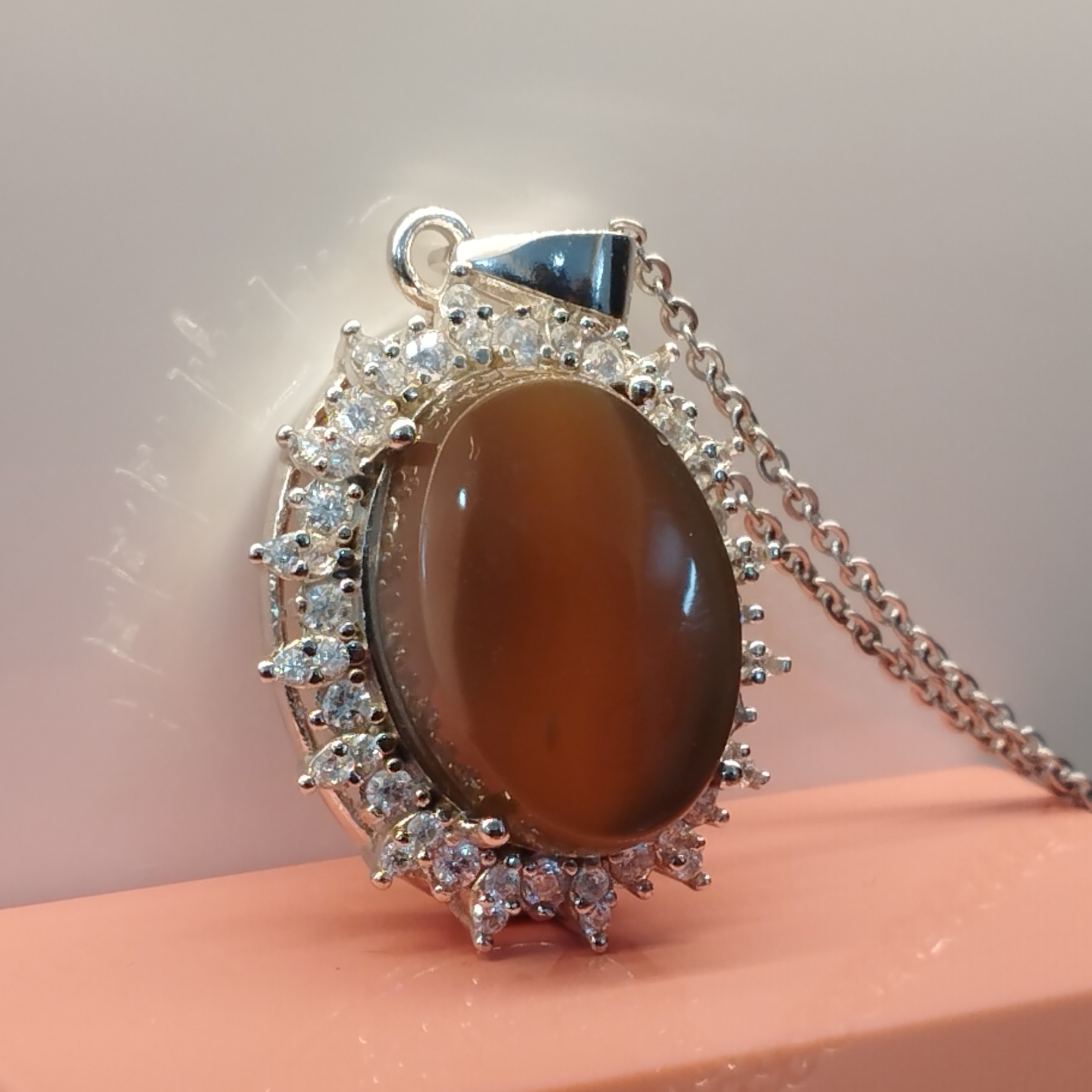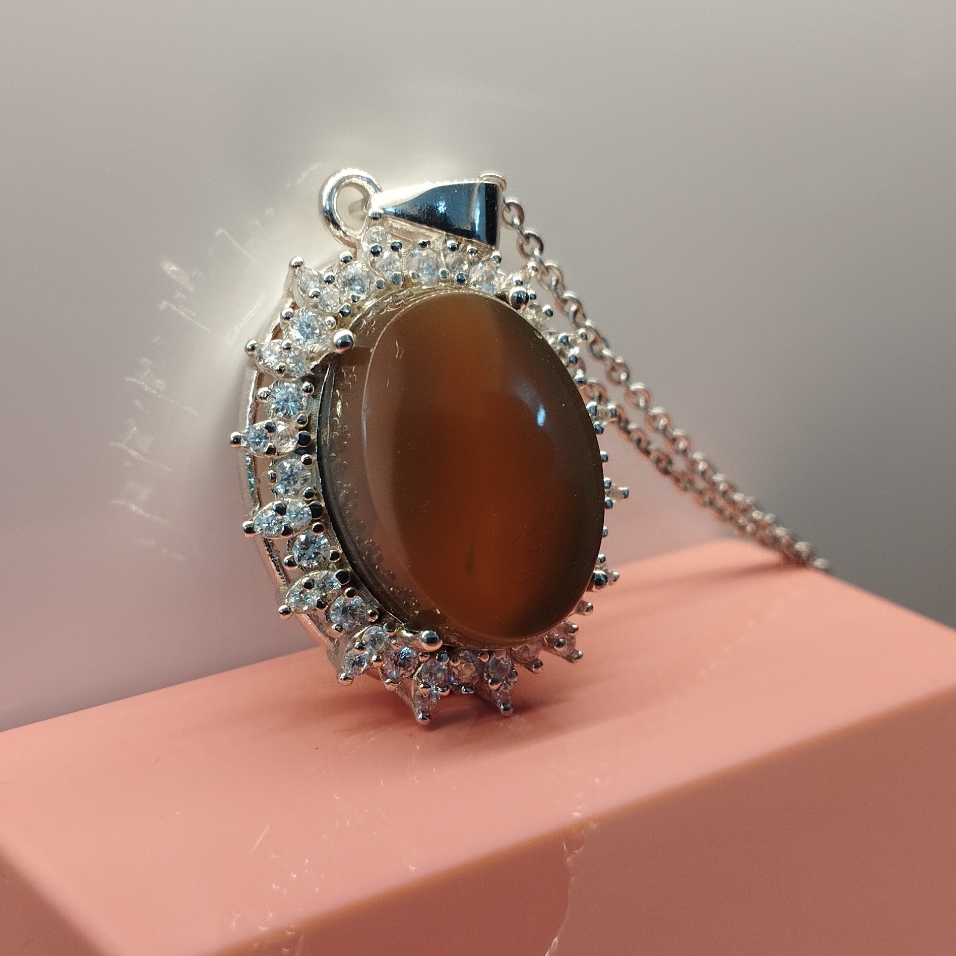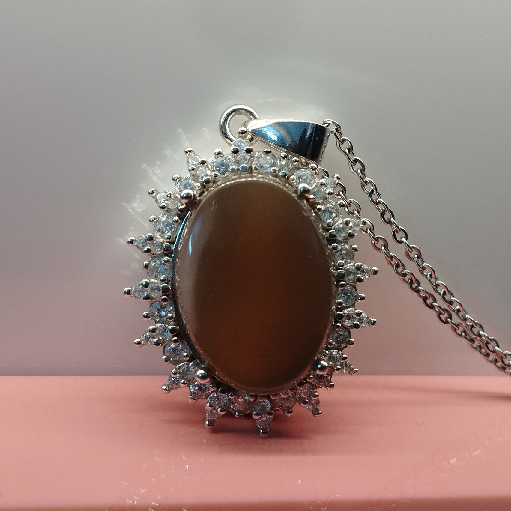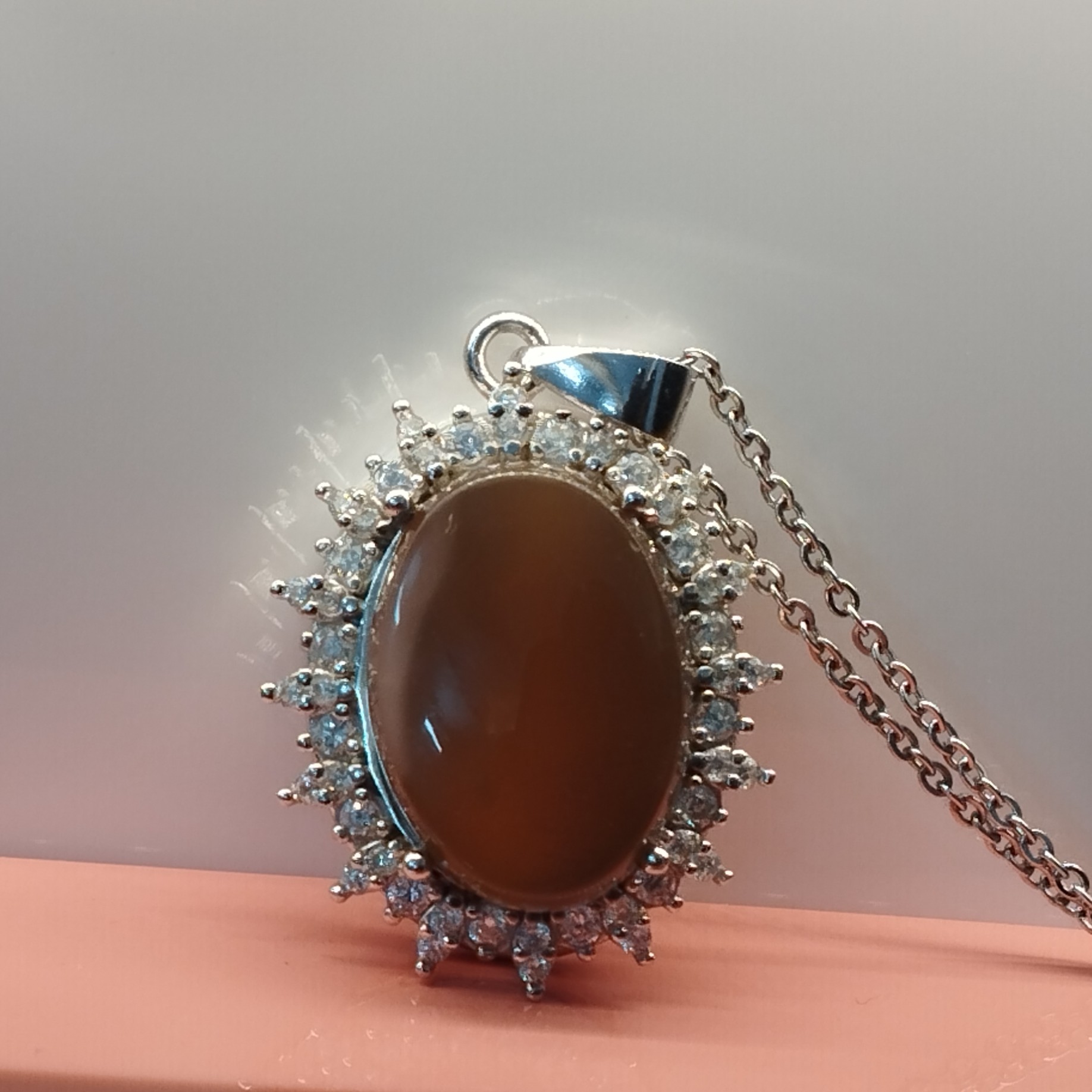 گردن آویز نقره زنانه با نگین اتمی،عقیق خرمایی صددرصد طبیعی با ضمانت مکتوب اصالت،برند دُرسیم