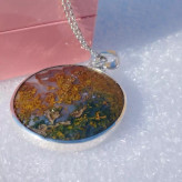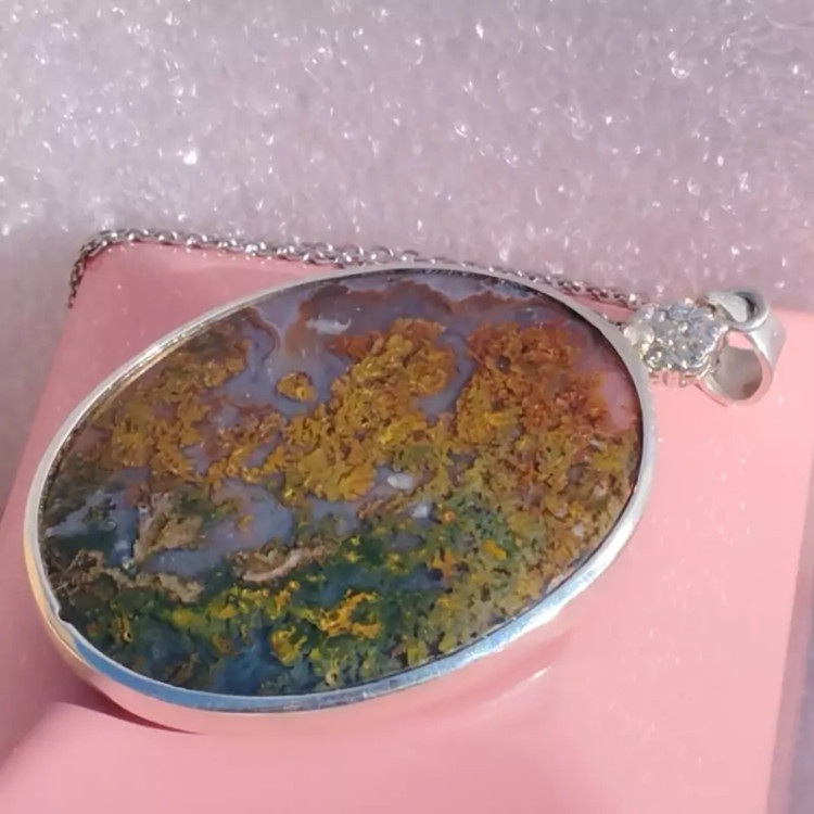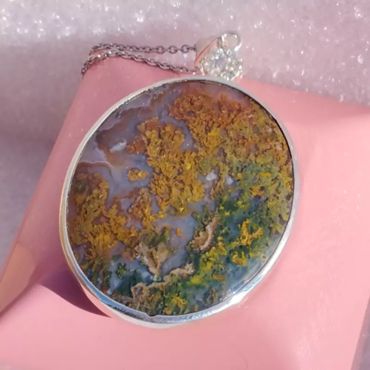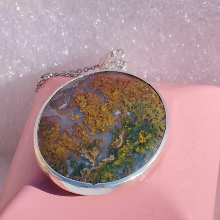 گردن آویز رومانتویی نقره زنانه با آبکاری رادیوم ، عقیق شجر پاییزه صددرصد طبیعی و معدنی با ضمانت مکتوب اصالت.برند دُرسیم