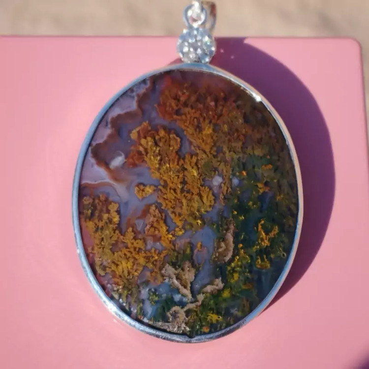 گرد آویز زنانه مناسب برای همه سنین فرم نقره عیار ۹۲۵ ساخت کارگاه جواهرسازی درسیم عقیق صددرصد طبیعی و معدنی شجر پاییزه تراش بیضی خیلی بزرگ مناسب رومانتویی و مجالس 🟣 کلیه عقیق های مجموعه تولیدی دُرسیم با #ضمانت_مکتوب ارایه میگردد ( ضمانت میکنیم که #جنس ، #رنگ و #طرح درون همه عقیق ها #طبیعی و #تراش_بدون_واسطه مجموعه تولیدی دُرسیم از سنگهای خام معادن جنوب خراسان بوده و #وارداتی،#رنگ_شده یا #مصنوعی نمیباشد)