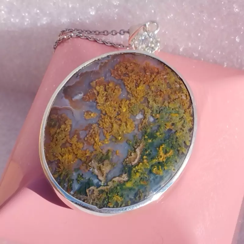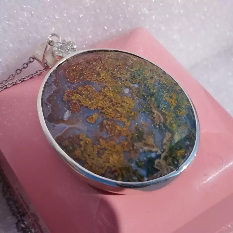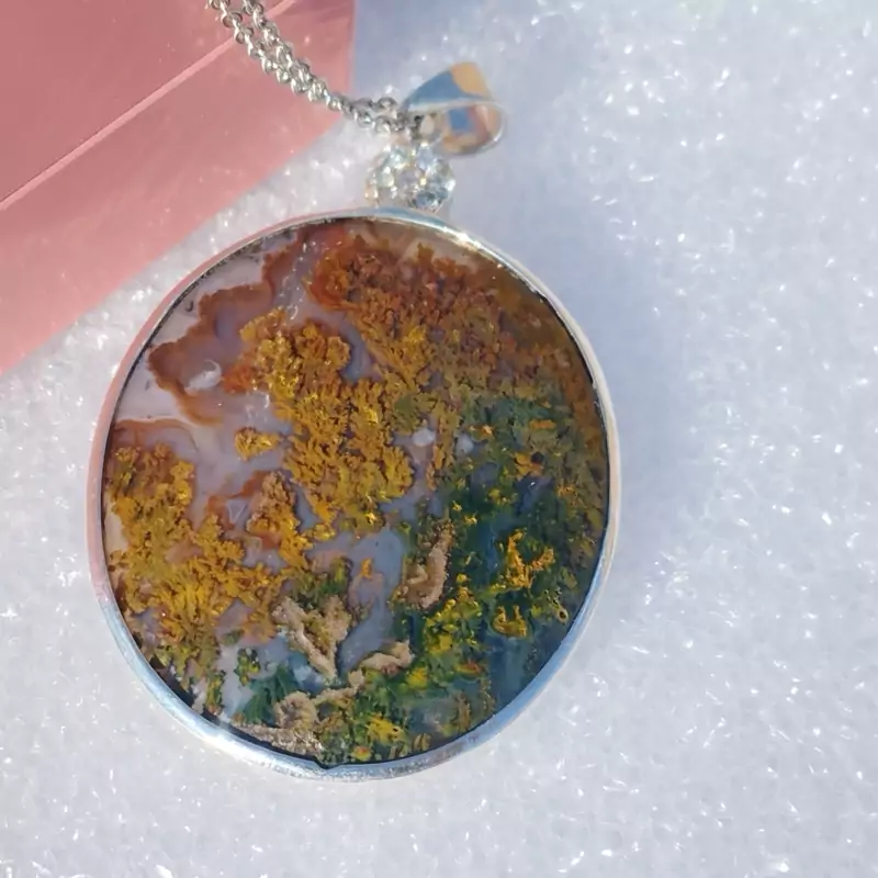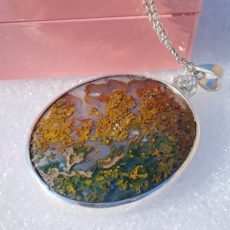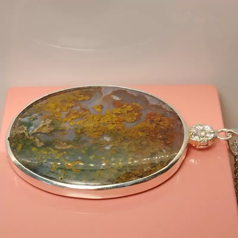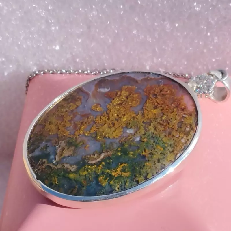 گردن آویز رومانتویی نقره زنانه با آبکاری رادیوم ، عقیق شجر پاییزه صددرصد طبیعی و معدنی با ضمانت مکتوب اصالت.برند دُرسیم