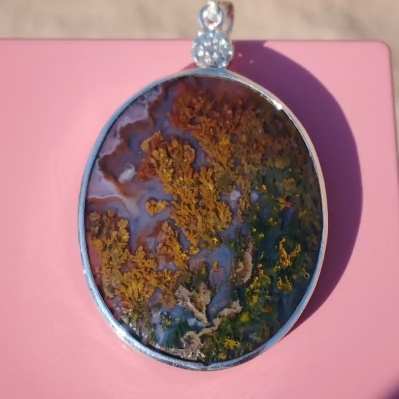 گرد آویز زنانه مناسب برای همه سنین فرم نقره عیار ۹۲۵ ساخت کارگاه جواهرسازی درسیم عقیق صددرصد طبیعی و معدنی شجر پاییزه تراش بیضی خیلی بزرگ مناسب رومانتویی و مجالس 🟣 کلیه عقیق های مجموعه تولیدی دُرسیم با #ضمانت_مکتوب ارایه میگردد ( ضمانت میکنیم که #جنس ، #رنگ و #طرح درون همه عقیق ها #طبیعی و #تراش_بدون_واسطه مجموعه تولیدی دُرسیم از سنگهای خام معادن جنوب خراسان بوده و #وارداتی،#رنگ_شده یا #مصنوعی نمیباشد)