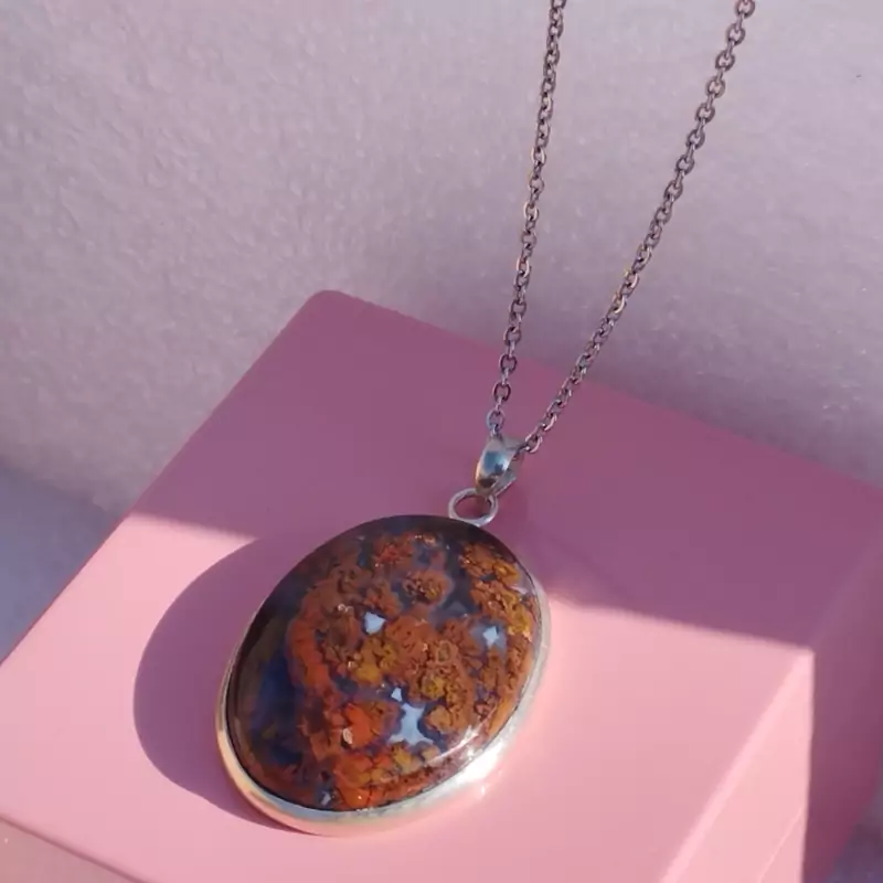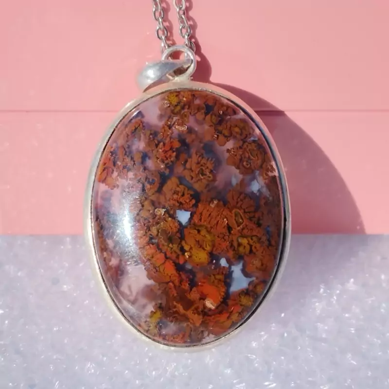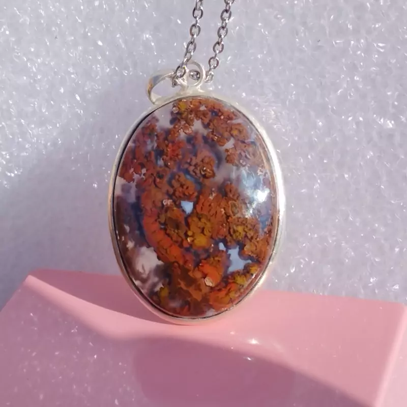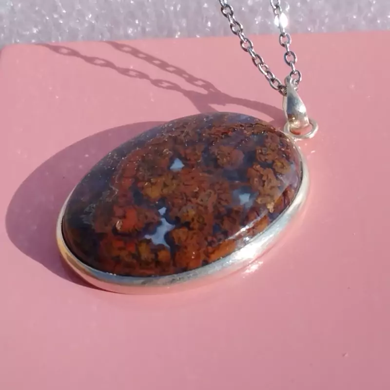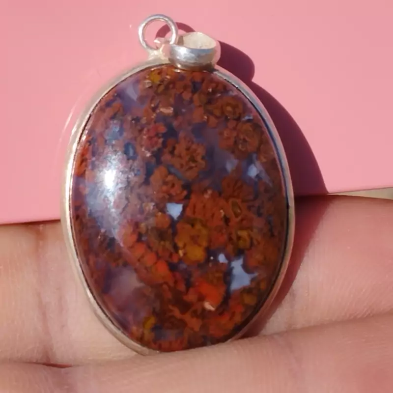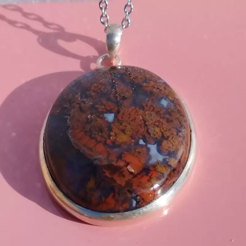 گردن آویز نقره زنانه مردانه عقیق منظره ای سرخ جاسپر صددرصد طبیعی و معدنی با ضمانت مکتوب اصالت،برند دُرسیم