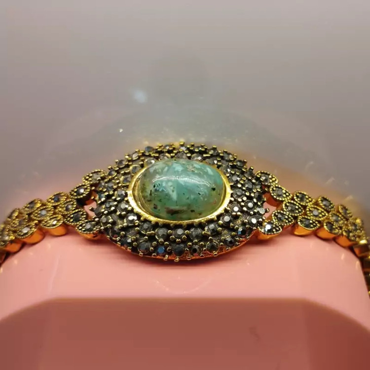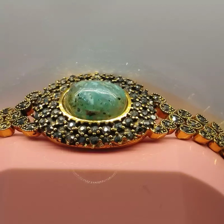 دستبند زنانه استیل رنگ ثابت نگین مارکازیت،عقیق شجر آبی فیروزه ای صددرصد طبیعی و معدنی با ضمانت مکتوب اصالت،برند دُرسیم