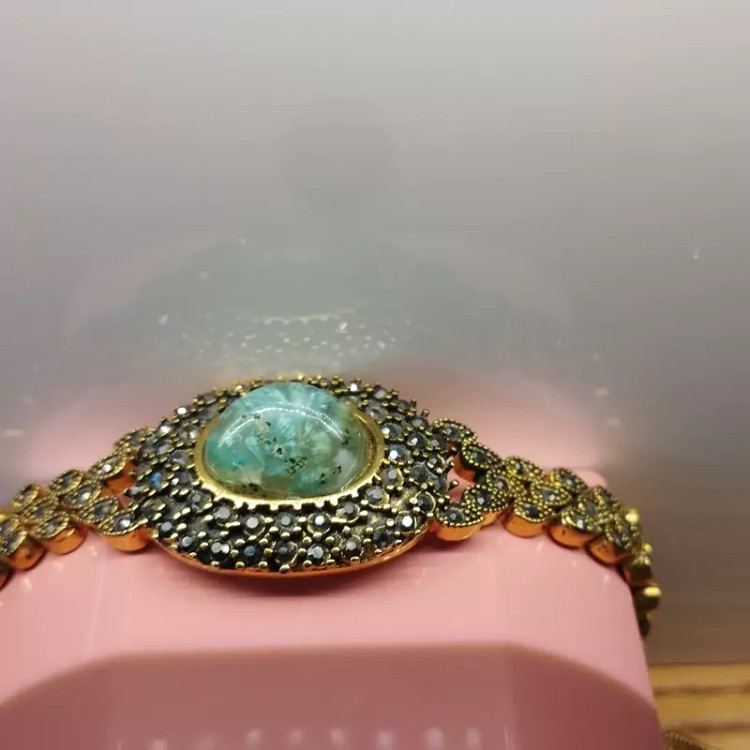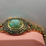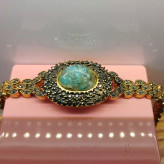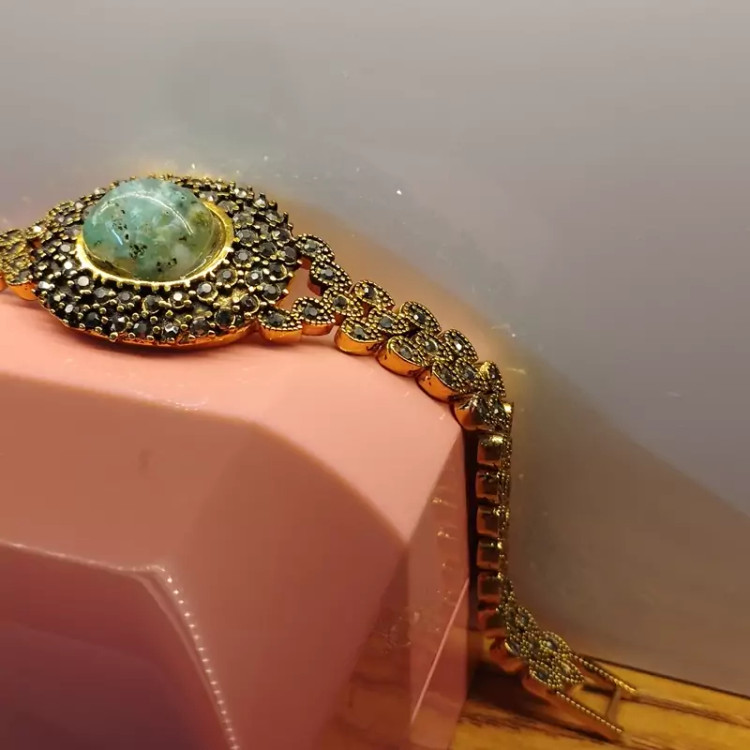 دستبند زنانه مناسب برای همه سنین فرم استیل رنگ ثابت با آبکاری زرد و نگین مارکازیت عقیق صددرصد طبیعی و معدنی شجر آبی فیروزه ای خاص و بی نظیر تراش اشک نگین 🟣 کلیه عقیق های مجموعه تولیدی دُرسیم با #ضمانت_مکتوب ارایه میگردد ( ضمانت میکنیم که #جنس ، #رنگ و #طرح درون همه عقیق ها #طبیعی و #تراش_بدون_واسطه مجموعه تولیدی دُرسیم از سنگهای خام معادن جنوب خراسان بوده و #وارداتی،#رنگ_شده یا #مصنوعی نمیباشد)