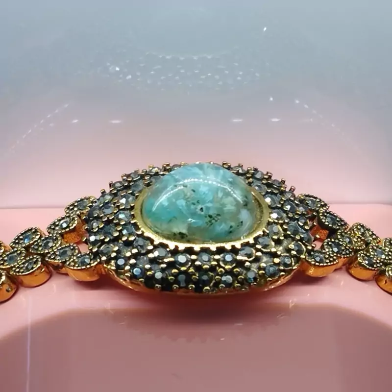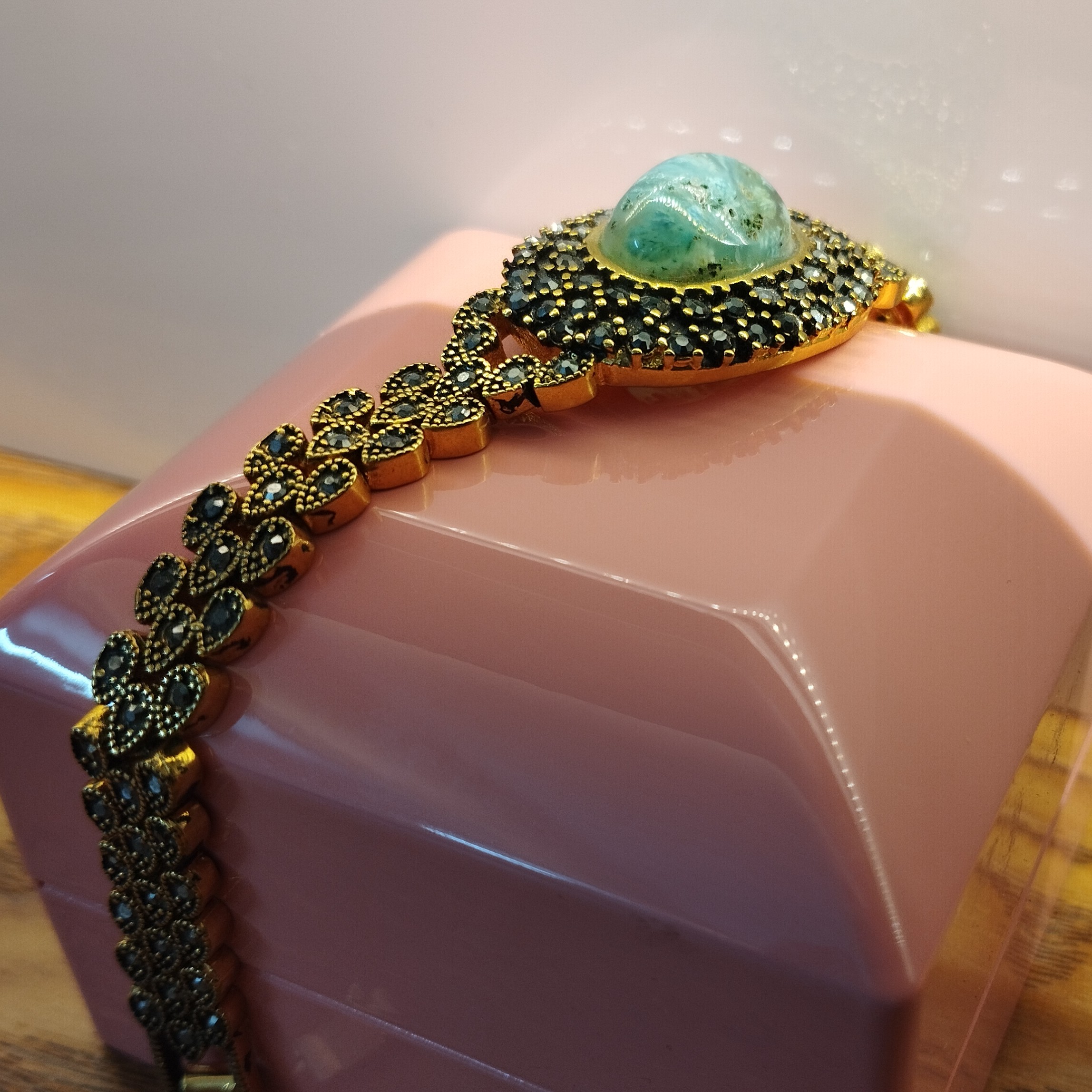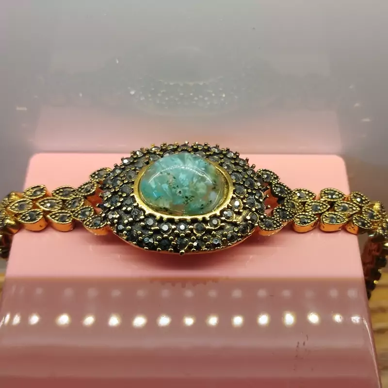 دستبند زنانه مناسب برای همه سنین فرم استیل رنگ ثابت با آبکاری زرد و نگین مارکازیت عقیق صددرصد طبیعی و معدنی شجر آبی فیروزه ای خاص و بی نظیر تراش اشک نگین 🟣 کلیه عقیق های مجموعه تولیدی دُرسیم با #ضمانت_مکتوب ارایه میگردد ( ضمانت میکنیم که #جنس ، #رنگ و #طرح درون همه عقیق ها #طبیعی و #تراش_بدون_واسطه مجموعه تولیدی دُرسیم از سنگهای خام معادن جنوب خراسان بوده و #وارداتی،#رنگ_شده یا #مصنوعی نمیباشد)