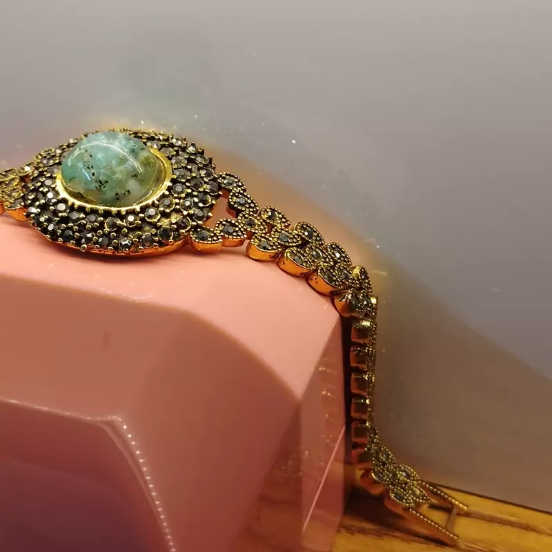 دستبند زنانه استیل رنگ ثابت نگین مارکازیت،عقیق شجر آبی فیروزه ای صددرصد طبیعی و معدنی با ضمانت مکتوب اصالت،برند دُرسیم