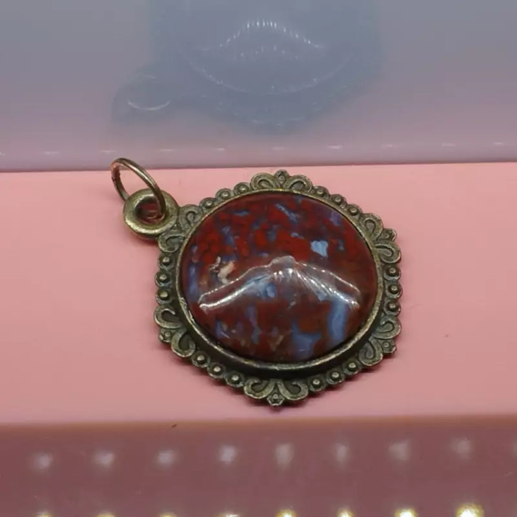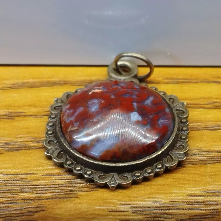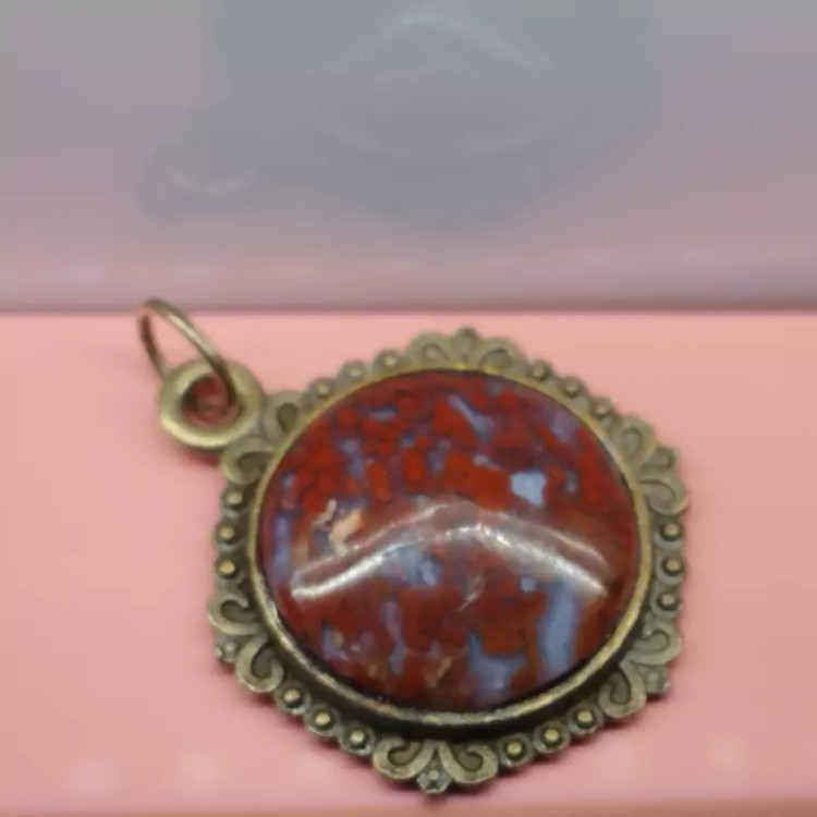 گردن آویز زنانه آلیاژ زیرخاکی با عقیق سرخ جاسپر منظره ای صددرصد طبیعی با ضمانت مکتوب اصالت،برند دُرسیم