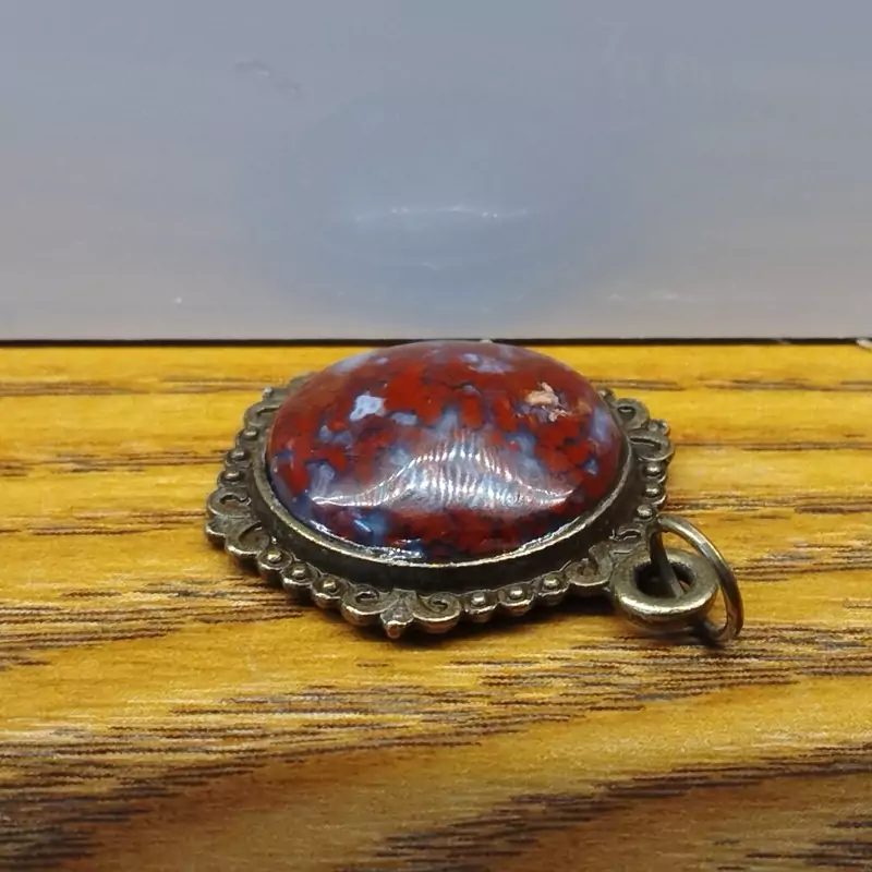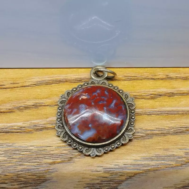 گردن آویز زنانه آلیاژ زیرخاکی با عقیق سرخ جاسپر منظره ای صددرصد طبیعی با ضمانت مکتوب اصالت،برند دُرسیم