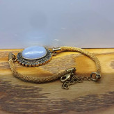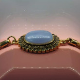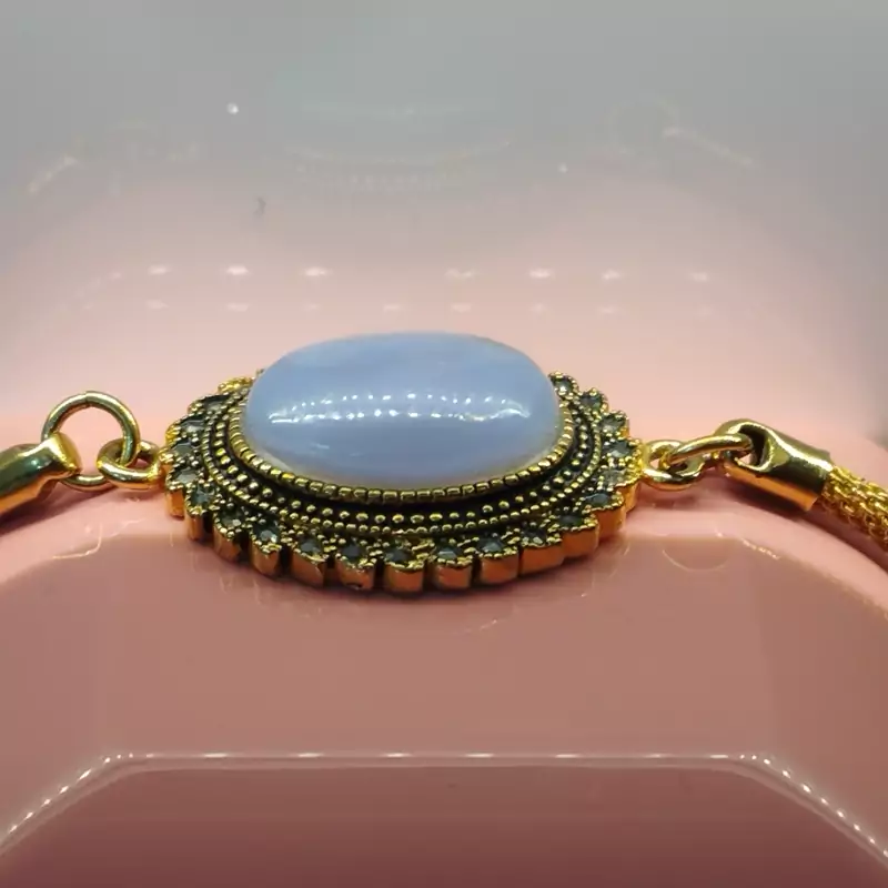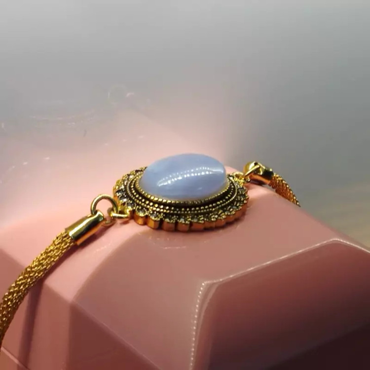 دستبند استیل رنگ ثابت با آبکاری زرد و نگین مارکازیت، عقیق آبی صددرصد طبیعی با ضمانت مکتوب اصالت،برند دُرسیم