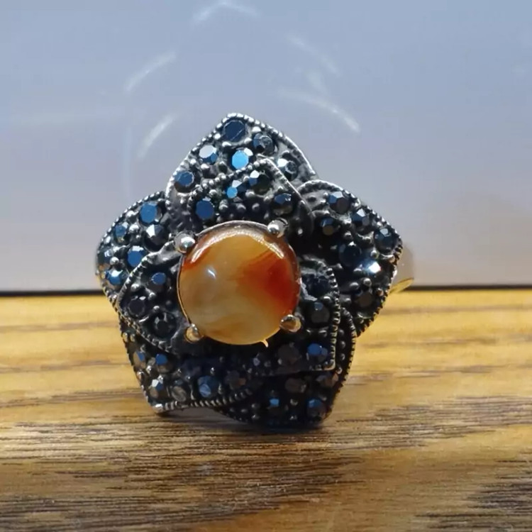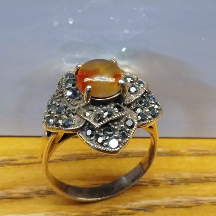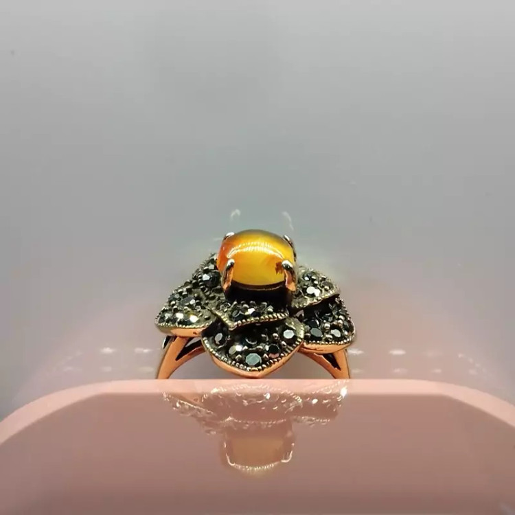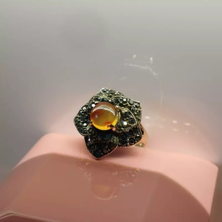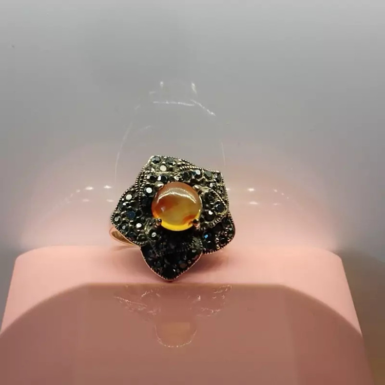 انگشتر زنانه مناسب برای همه سنین فرم نقره استیل رنگ ثابت با نگین مارکازیت طرح گل رز عقیق صددرصد طبیعی و معدنی سرخ و زرد 🟣 کلیه عقیق های مجموعه تولیدی دُرسیم با #ضمانت_مکتوب ارایه میگردد ( ضمانت میکنیم که #جنس ، #رنگ و #طرح درون همه عقیق ها #طبیعی و #تراش_بدون_واسطه مجموعه تولیدی دُرسیم از سنگهای خام معادن جنوب خراسان بوده و #وارداتی،#رنگ_شده یا #مصنوعی نمیباشد)