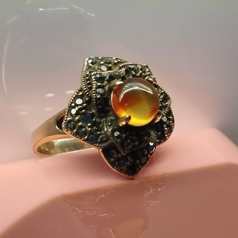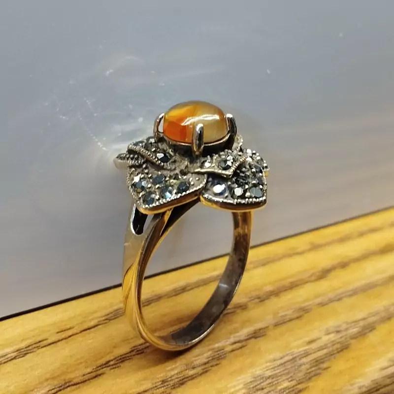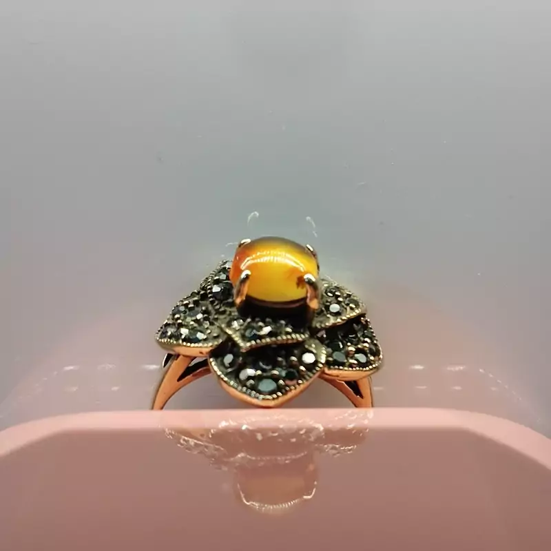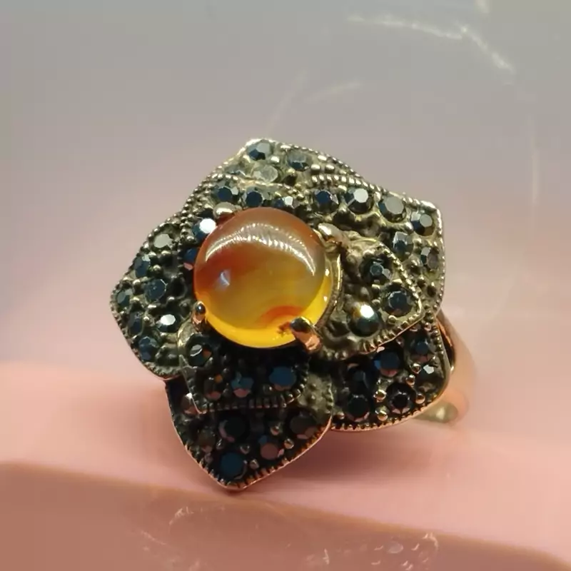 انگشتر زنانه مناسب برای همه سنین فرم نقره استیل رنگ ثابت با نگین مارکازیت طرح گل رز عقیق صددرصد طبیعی و معدنی سرخ و زرد 🟣 کلیه عقیق های مجموعه تولیدی دُرسیم با #ضمانت_مکتوب ارایه میگردد ( ضمانت میکنیم که #جنس ، #رنگ و #طرح درون همه عقیق ها #طبیعی و #تراش_بدون_واسطه مجموعه تولیدی دُرسیم از سنگهای خام معادن جنوب خراسان بوده و #وارداتی،#رنگ_شده یا #مصنوعی نمیباشد)