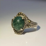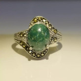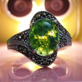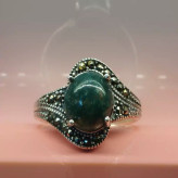 انگشتر نقره زنانه عقیق سبز خزه ای صددرصد طبیعی با ضمانت مکتوب اصالت ، برند دُرسیم