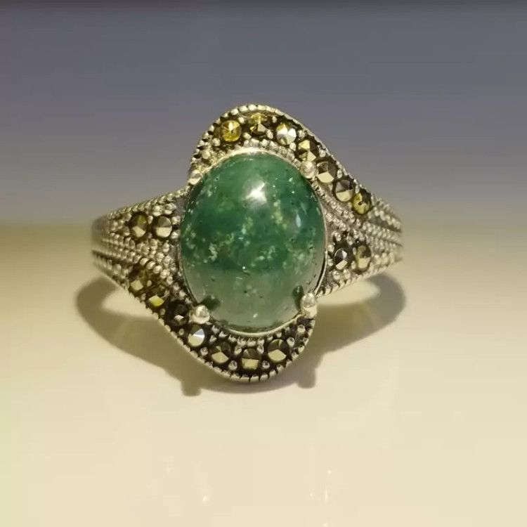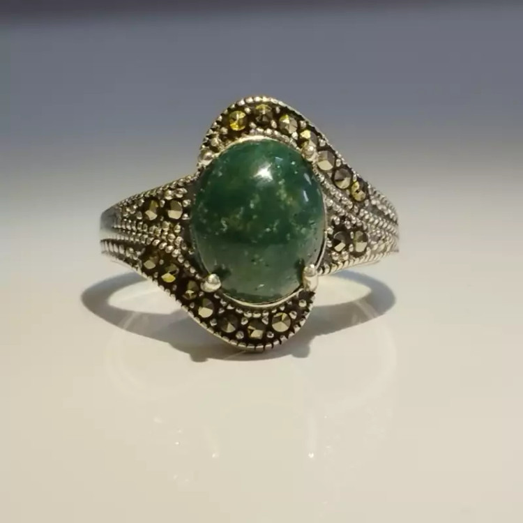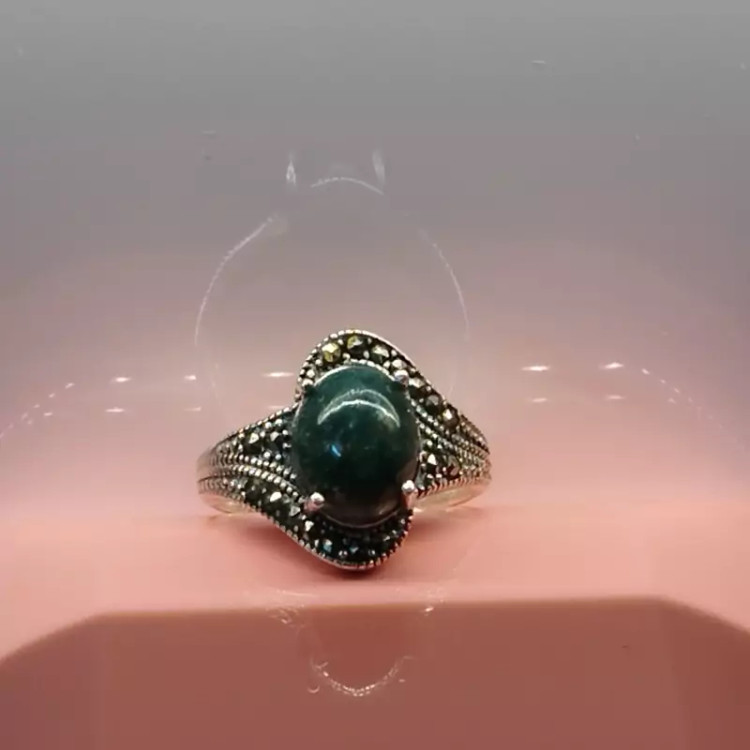 انگشتر زنانه مناسب برای همه سنین فرم نقره عیار ۹۲۵ عقیق صددرصد طبیعی و معدنی سبز خزه ای 🟣 کلیه عقیق های مجموعه تولیدی دُرسیم با #ضمانت_مکتوب ارایه میگردد ( ضمانت میکنیم که #جنس ، #رنگ و #طرح درون همه عقیق ها #طبیعی و #تراش_بدون_واسطه مجموعه تولیدی دُرسیم از سنگهای خام معادن جنوب خراسان بوده و #وارداتی،#رنگ_شده یا #مصنوعی نمیباشد)