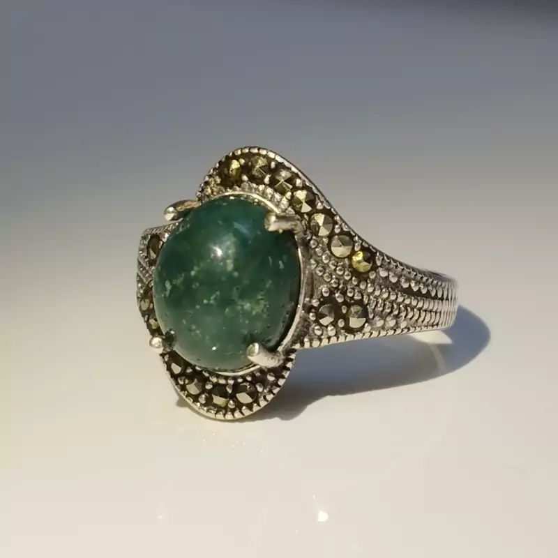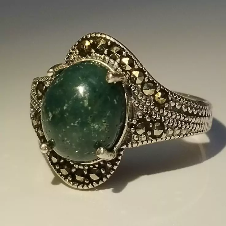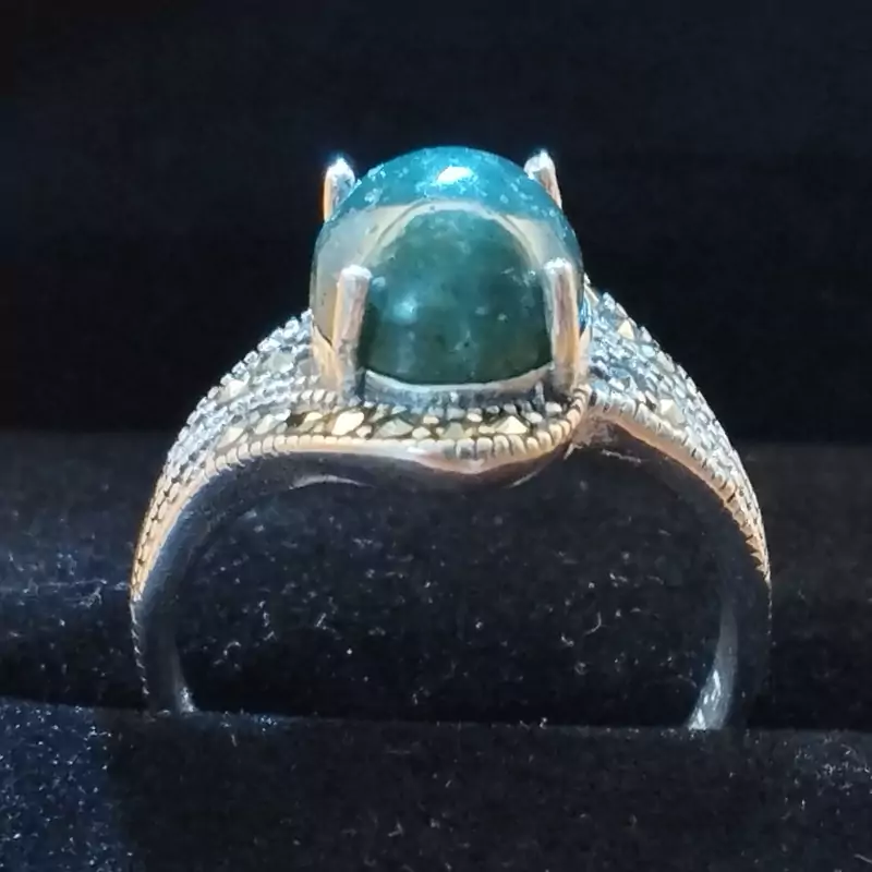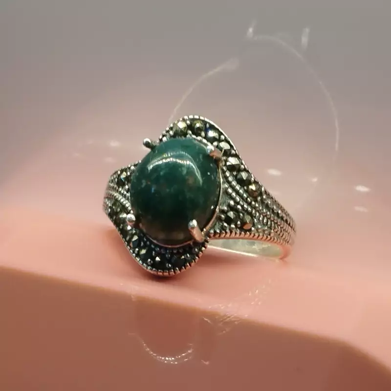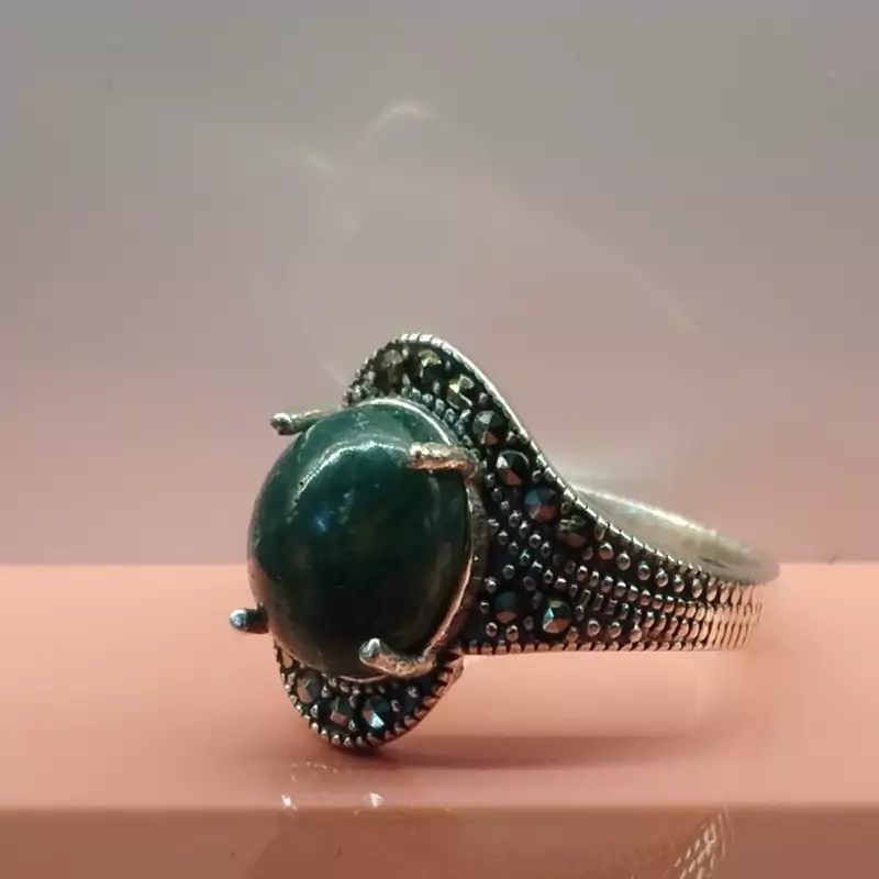 انگشتر زنانه مناسب برای همه سنین فرم نقره عیار ۹۲۵ عقیق صددرصد طبیعی و معدنی سبز خزه ای 🟣 کلیه عقیق های مجموعه تولیدی دُرسیم با #ضمانت_مکتوب ارایه میگردد ( ضمانت میکنیم که #جنس ، #رنگ و #طرح درون همه عقیق ها #طبیعی و #تراش_بدون_واسطه مجموعه تولیدی دُرسیم از سنگهای خام معادن جنوب خراسان بوده و #وارداتی،#رنگ_شده یا #مصنوعی نمیباشد)