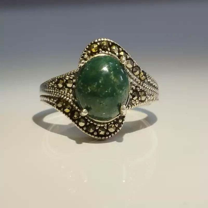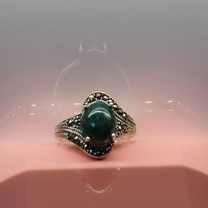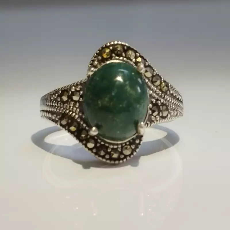 انگشتر نقره زنانه عقیق سبز خزه ای صددرصد طبیعی با ضمانت مکتوب اصالت ، برند دُرسیم