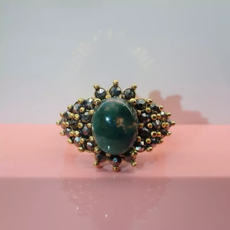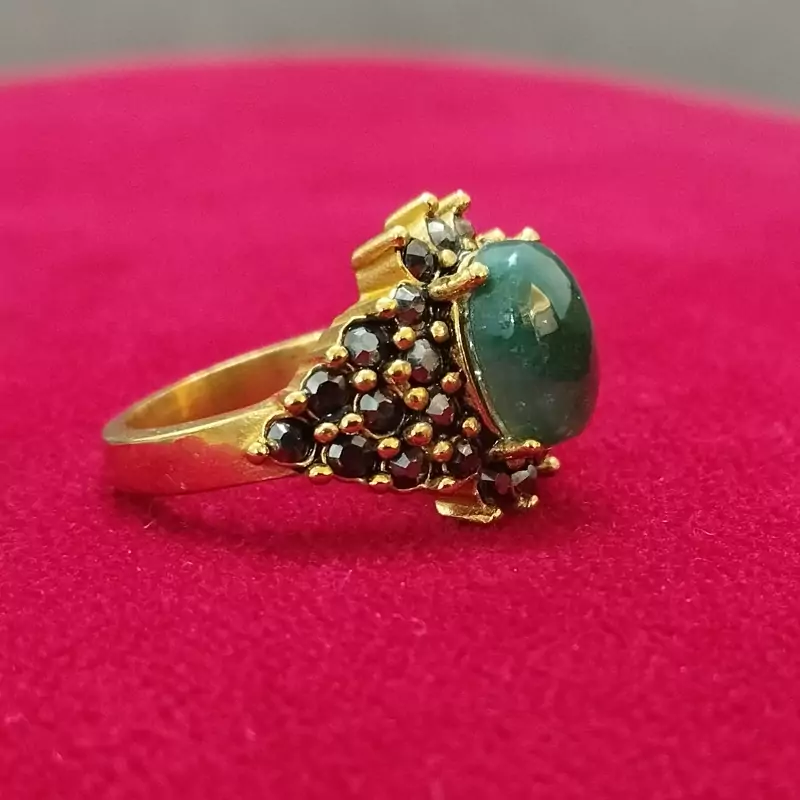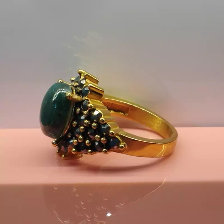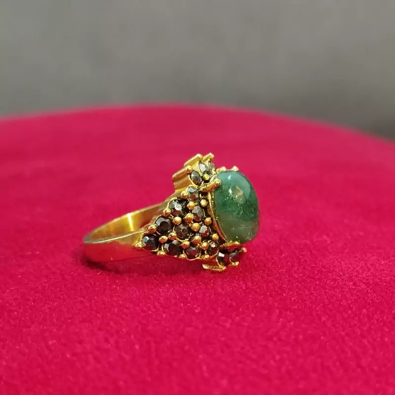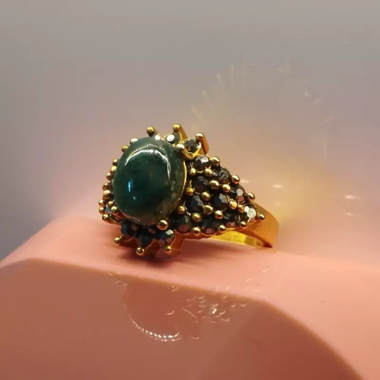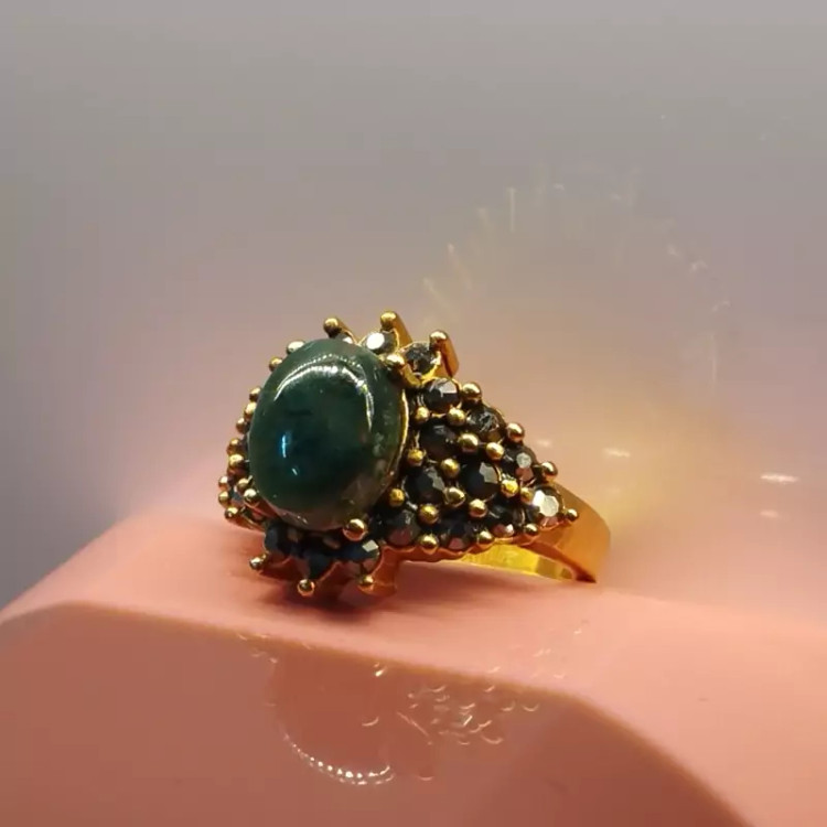 انگشتر استیل زنانه عقیق سبز خزه ای صددرصد طبیعی با ضمانت مکتوب اصالت، برند دُرسیم