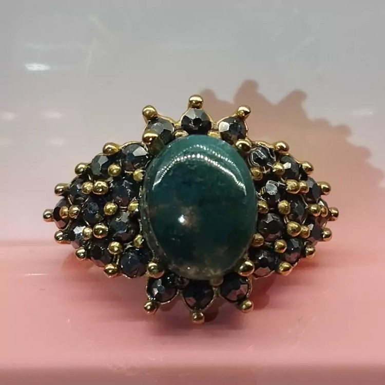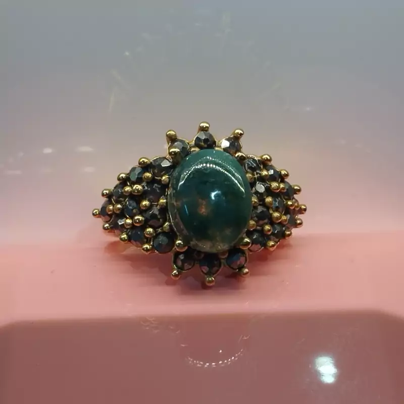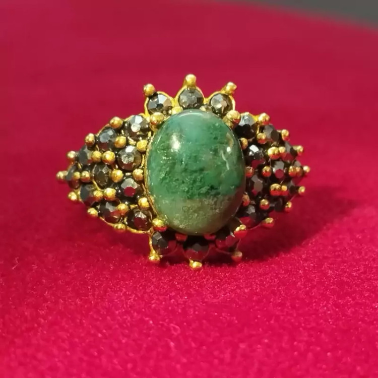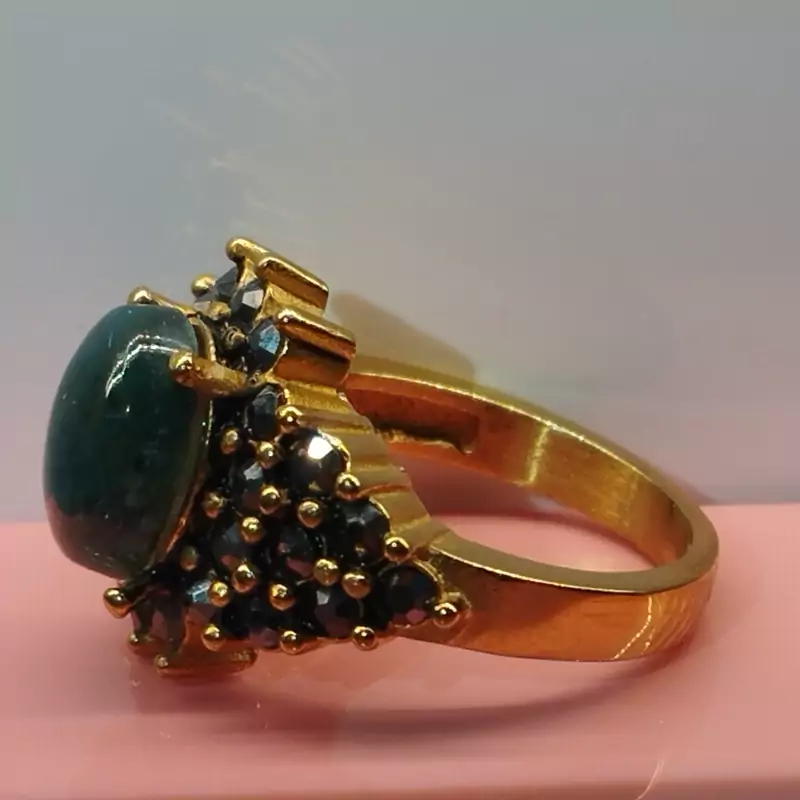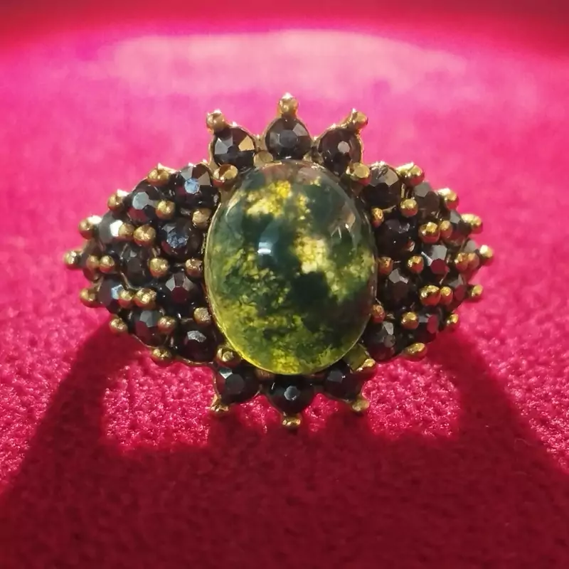انگشتر استیل زنانه عقیق سبز خزه ای صددرصد طبیعی با ضمانت مکتوب اصالت، برند دُرسیم