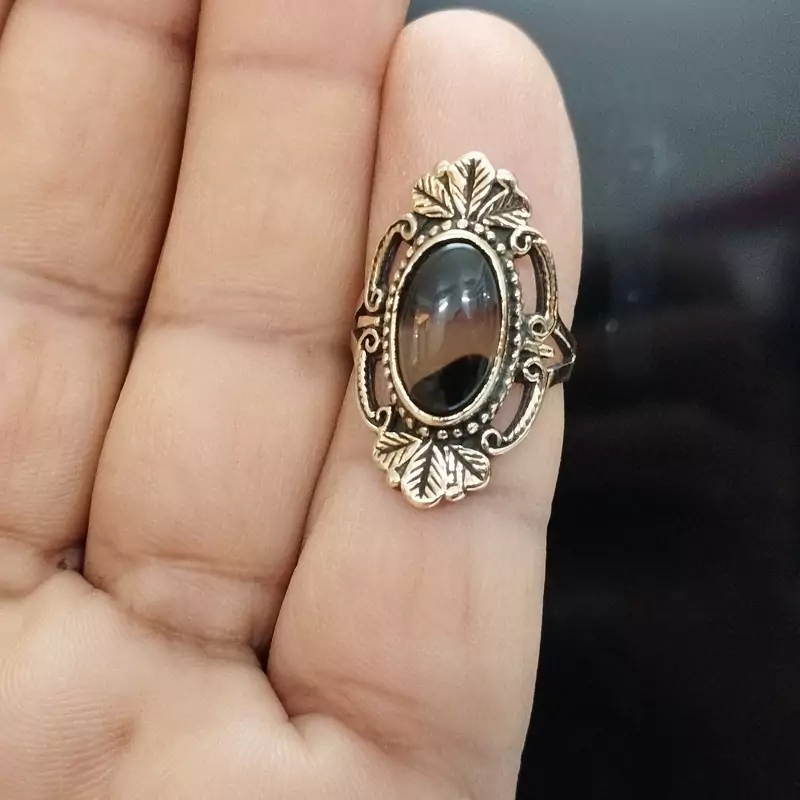 انگشتر استیل زنانه عقیق سلیمانی سفید و مشکی صددرصد طبیعی با ضمانت مکتوب اصابت.برند دُرسیم