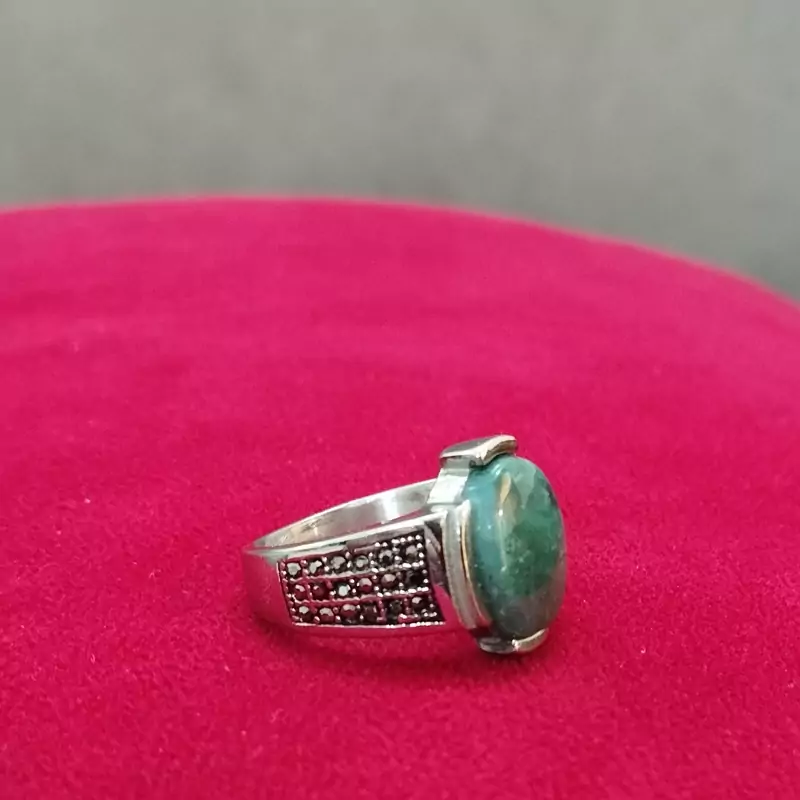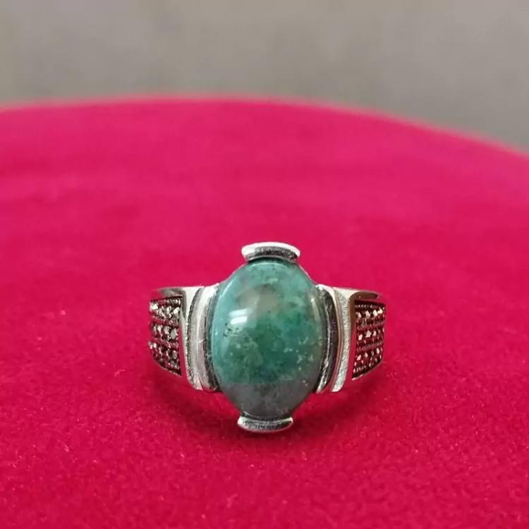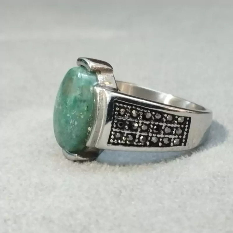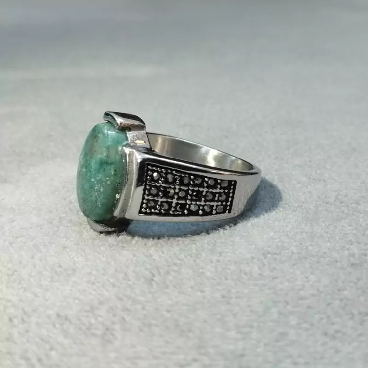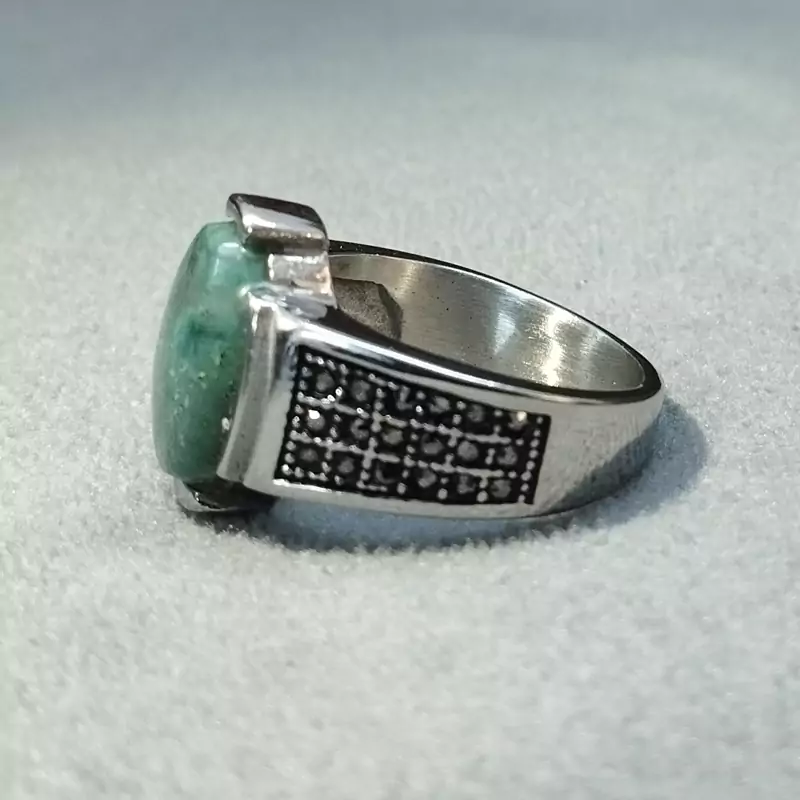 انگشتر استیل مردانه عقیق صددرصد طبیعی سبز جاسپر فیروزه ای با ضمانت مکتوب اصالت.برند دُرسیم