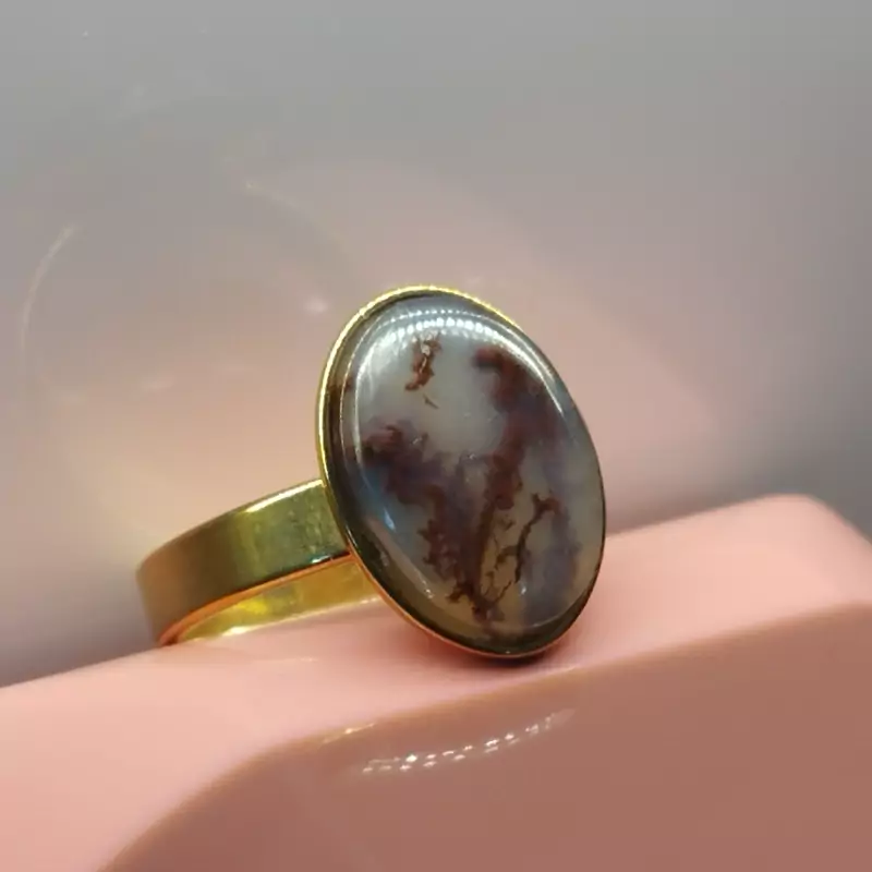 انگشتر استیل زنانه رنگ ثابت ،عقیق شجر صددرصد طبیعی با ضمانت مکتوب اصالت.برند دُرسیم
