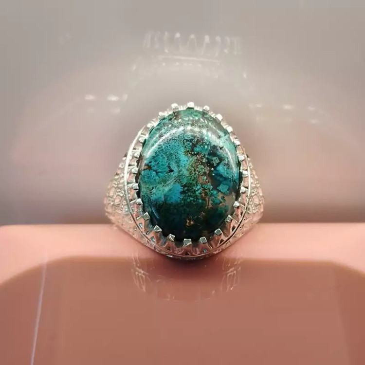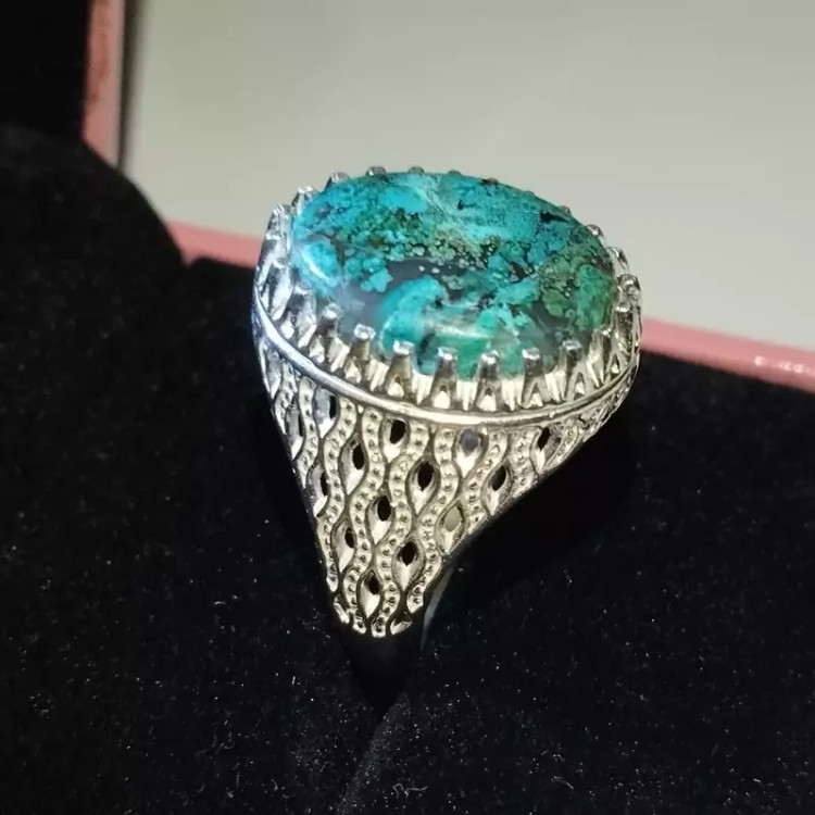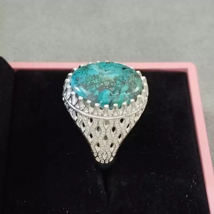 انگشتر نقره مردانه عقیق آبی فیروزه ای خاص و کمیاب صددرصد طبیعی با ضمانت مکتوب اصالت.برند دُرسیم