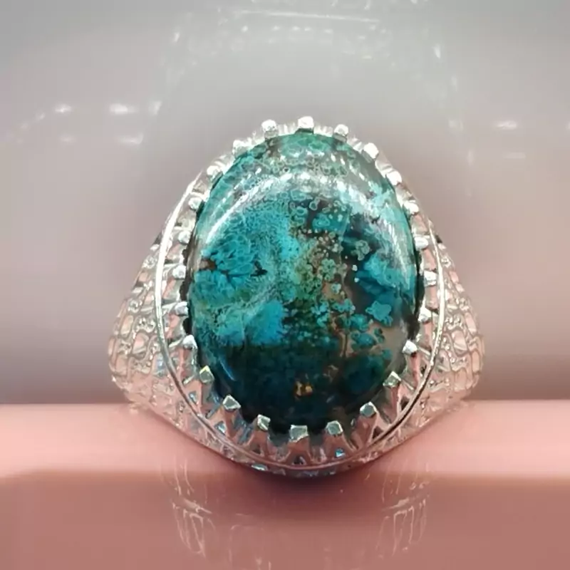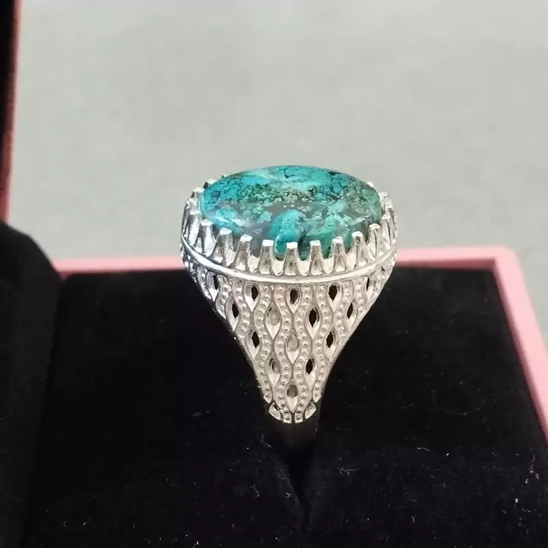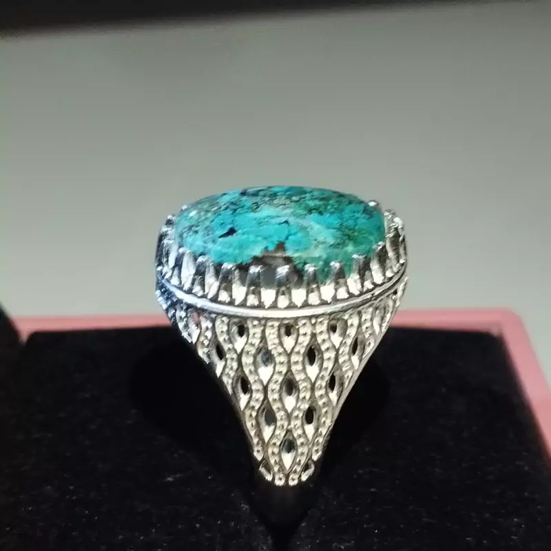 انگشتر نقره مردانه عقیق آبی فیروزه ای خاص و کمیاب صددرصد طبیعی با ضمانت مکتوب اصالت.برند دُرسیم
