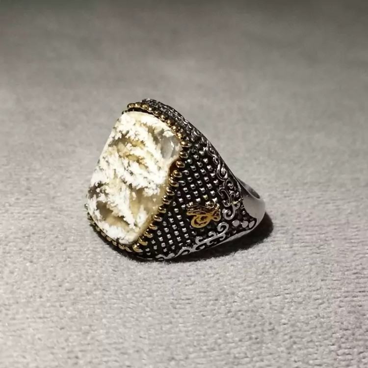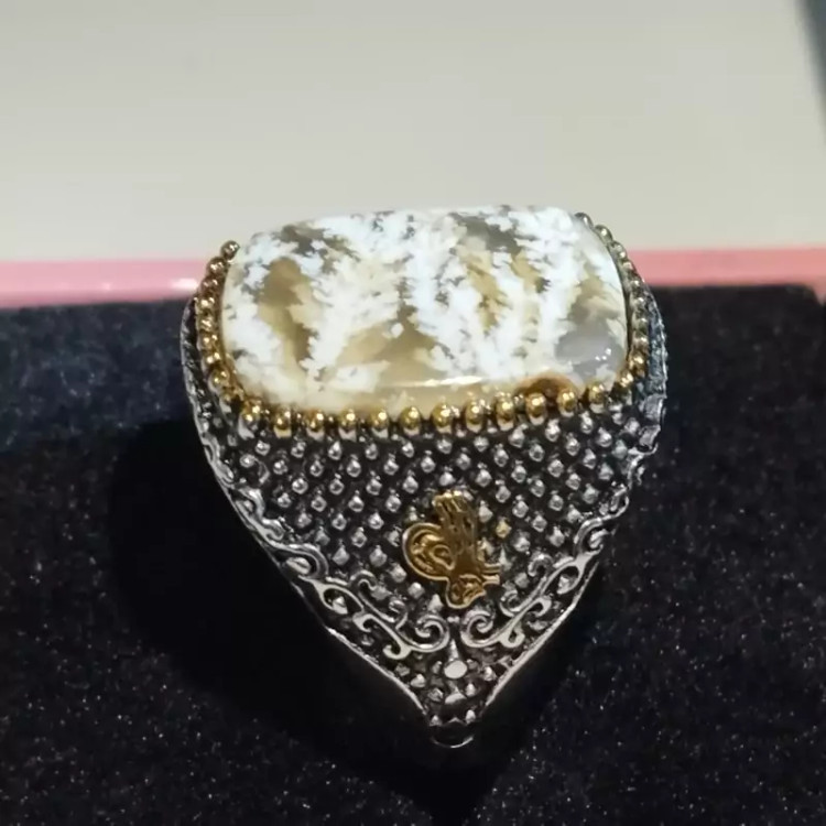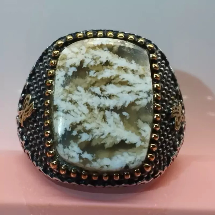 انگشتر استیل رنگ ثابت مردانه عقیق شجر صددرصدطبیعی با ضمانت مکتوب اصالت.برند دُرسیم