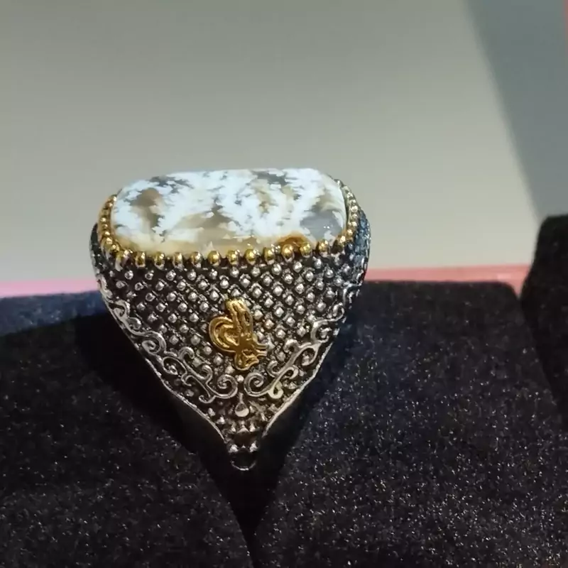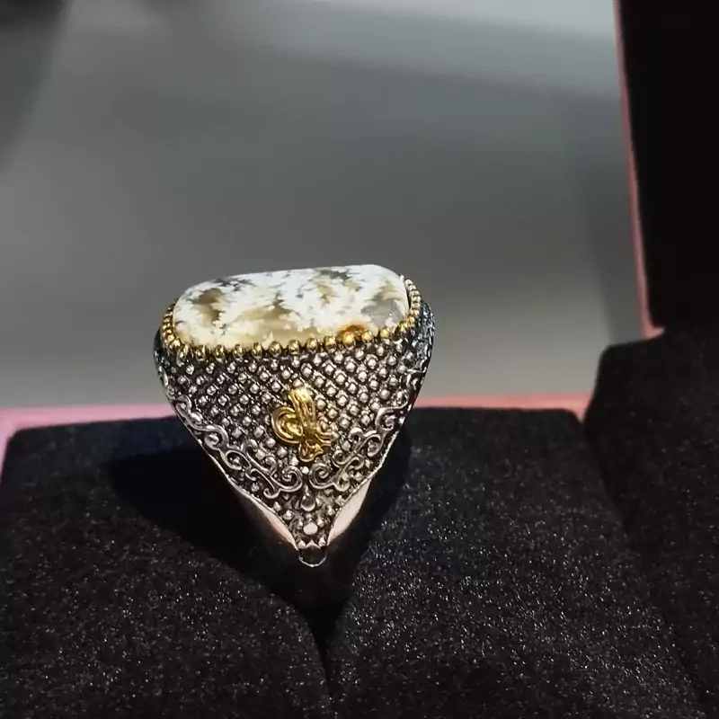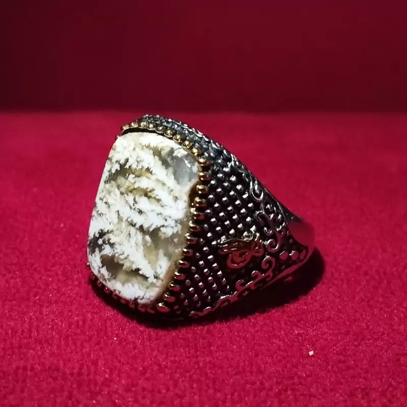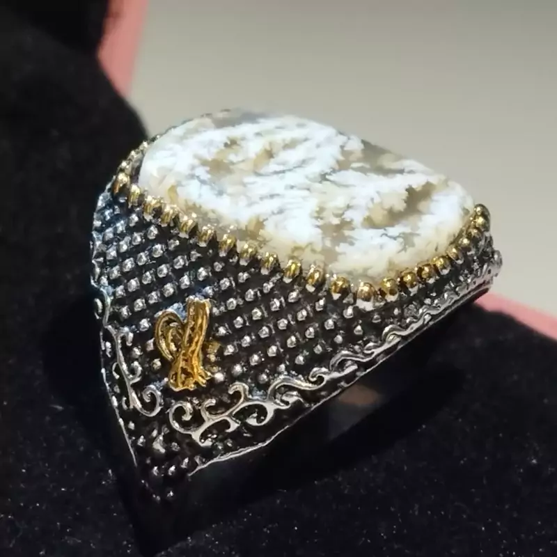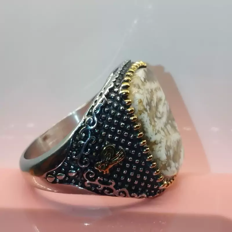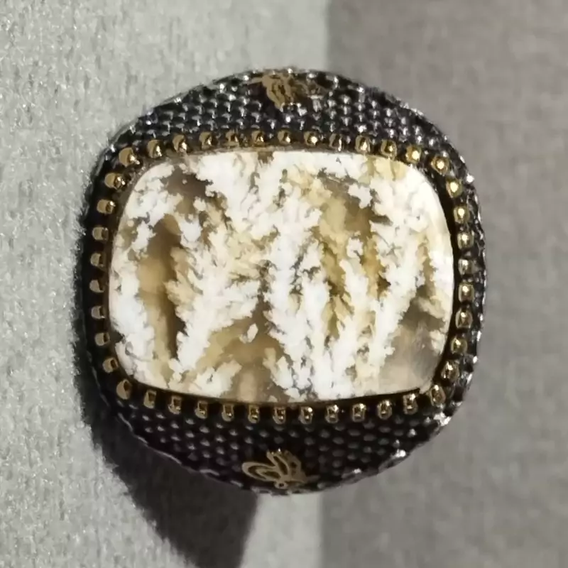انگشتر استیل رنگ ثابت مردانه عقیق شجر صددرصدطبیعی با ضمانت مکتوب اصالت.برند دُرسیم