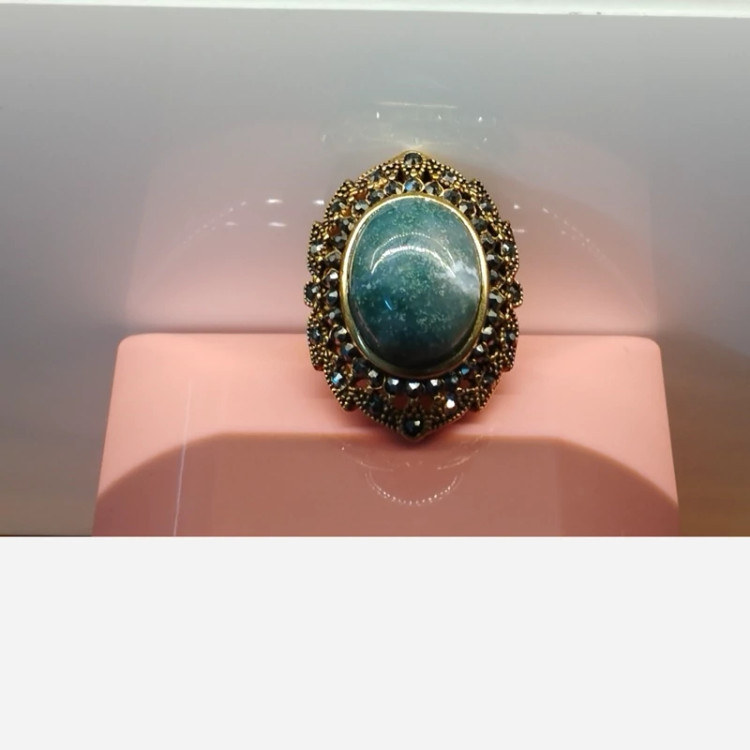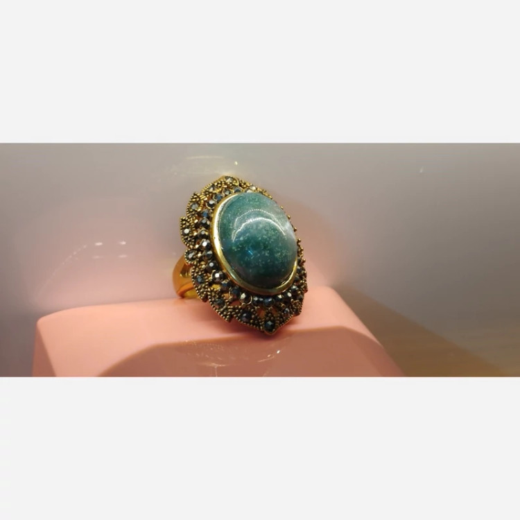 انگشتر استیل رنگ ثابت زنانه عقیق جاسپر سبزه خزه ای صددرصد طبیعی و معدنی با ضمانت مکتوب اصالت.برند دُرسیم