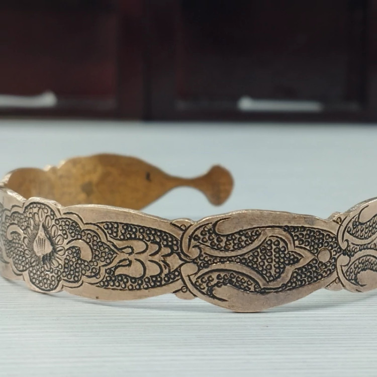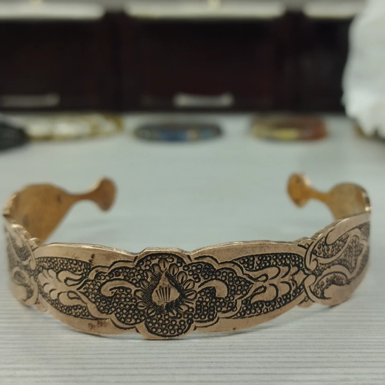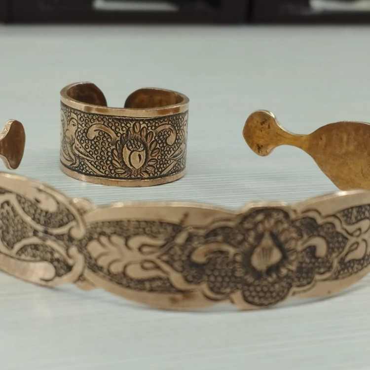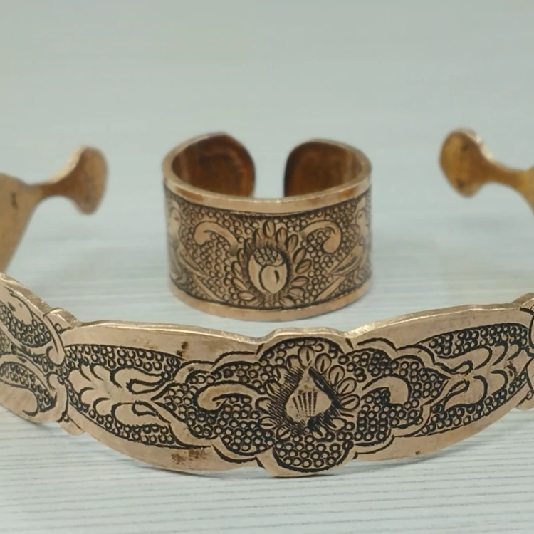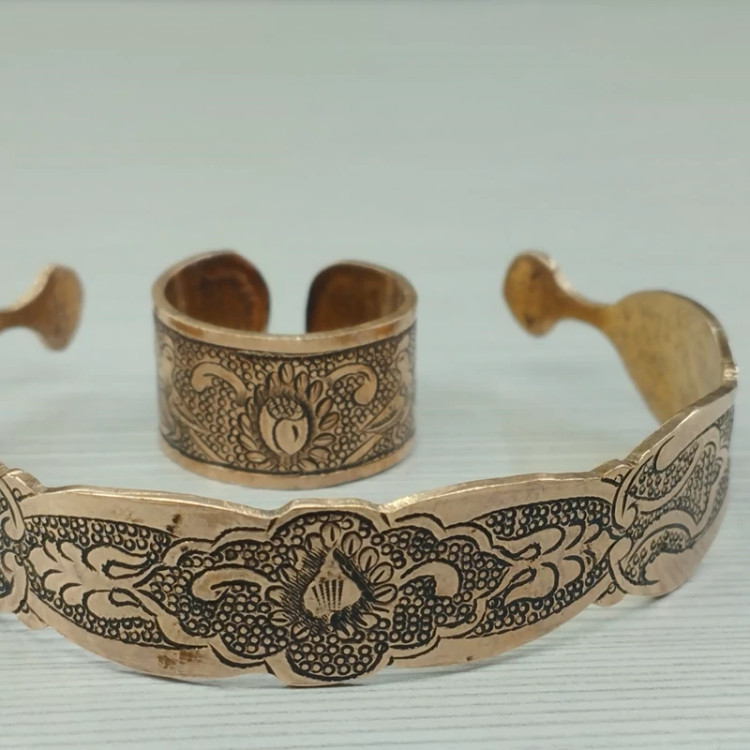 زیورآلات مسی ست دستبند و انگشتر مسی قلمزنی سیاه قلم