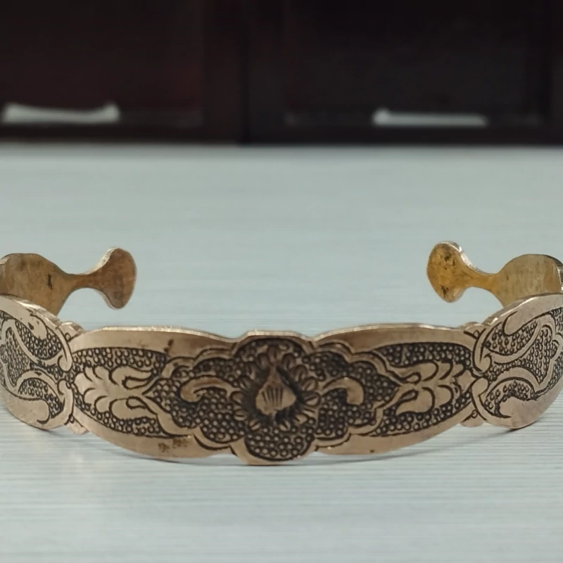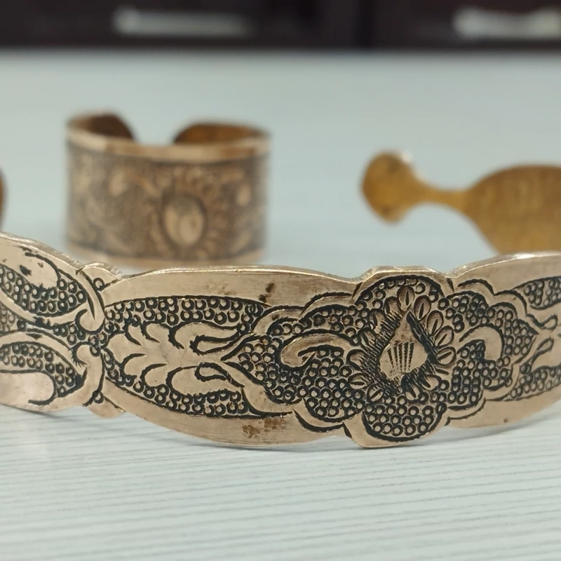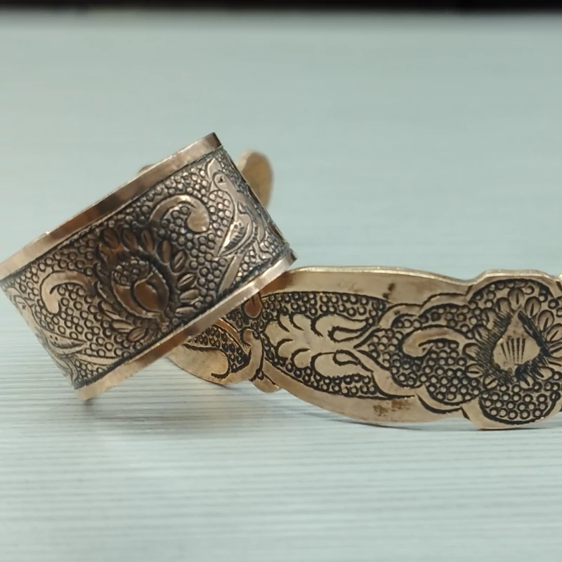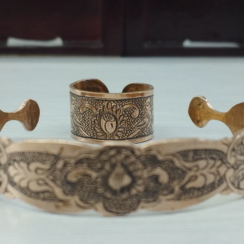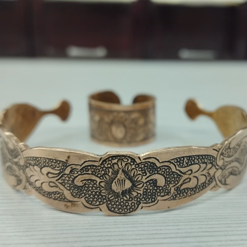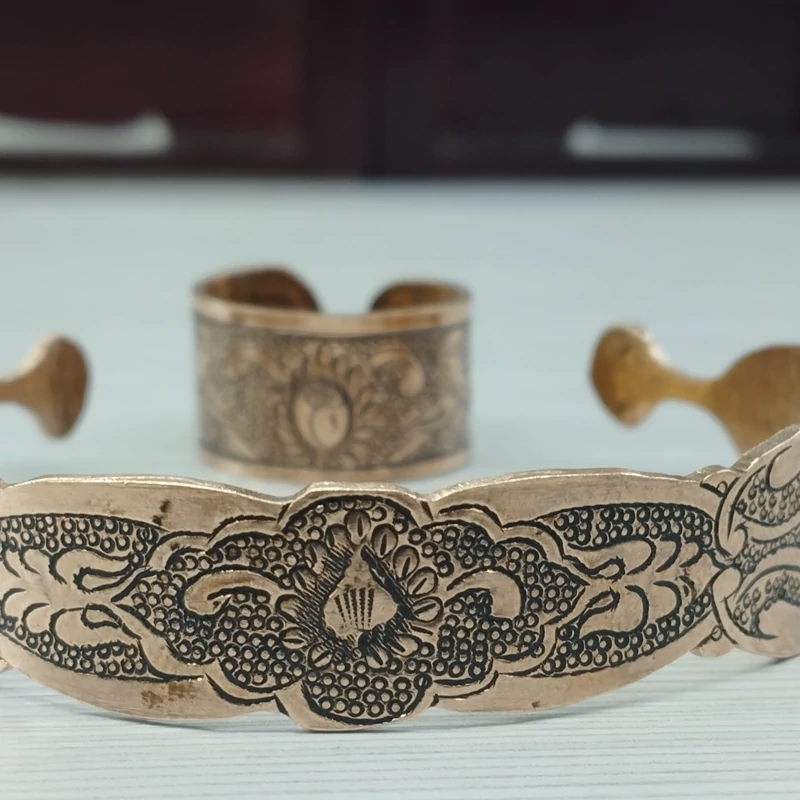 زیورآلات مسی ست دستبند و انگشتر مسی قلمزنی سیاه قلم