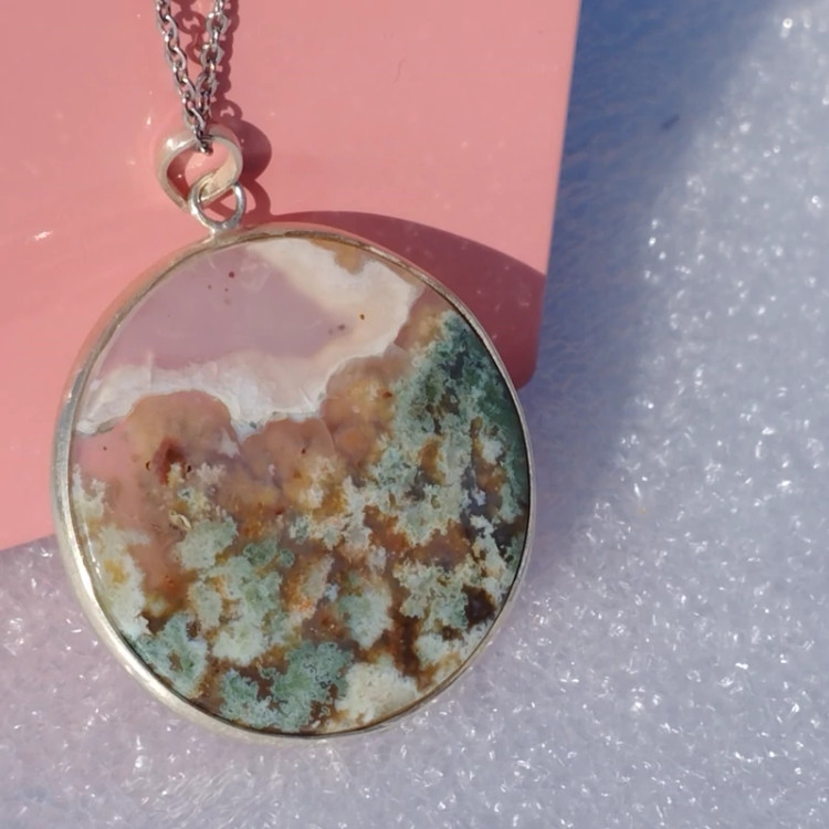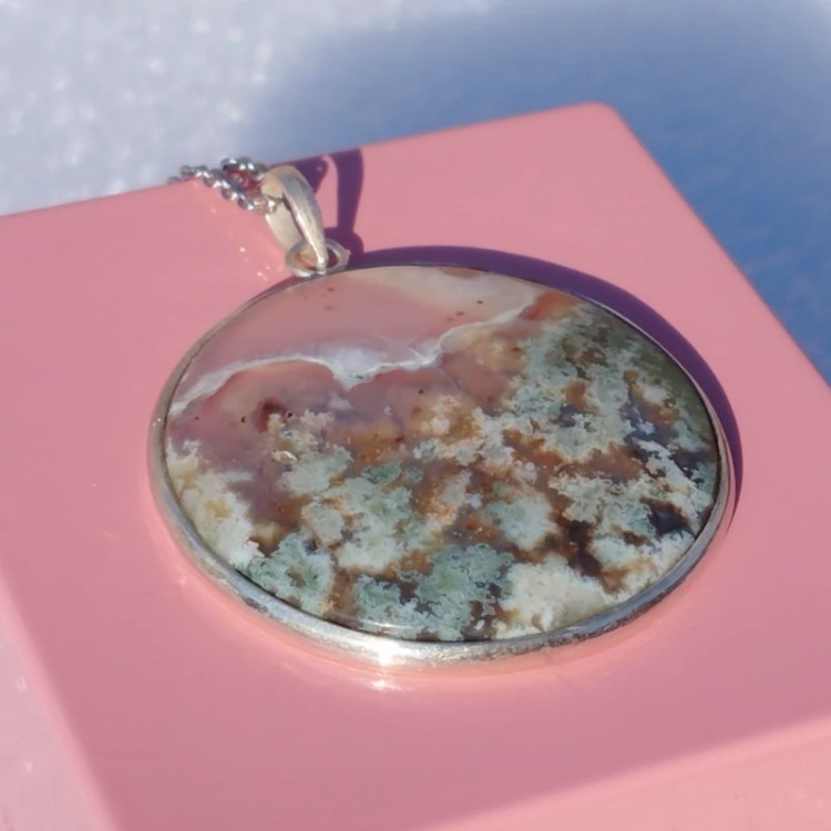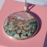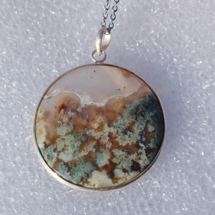 گردن آویز نقره دست ساز زنانه مردانه با عقیق منظره ای سبز پسته ای صددرصد طبیعی و معدنی با ضمانت مکتوب اصالت،برند دُرسیم