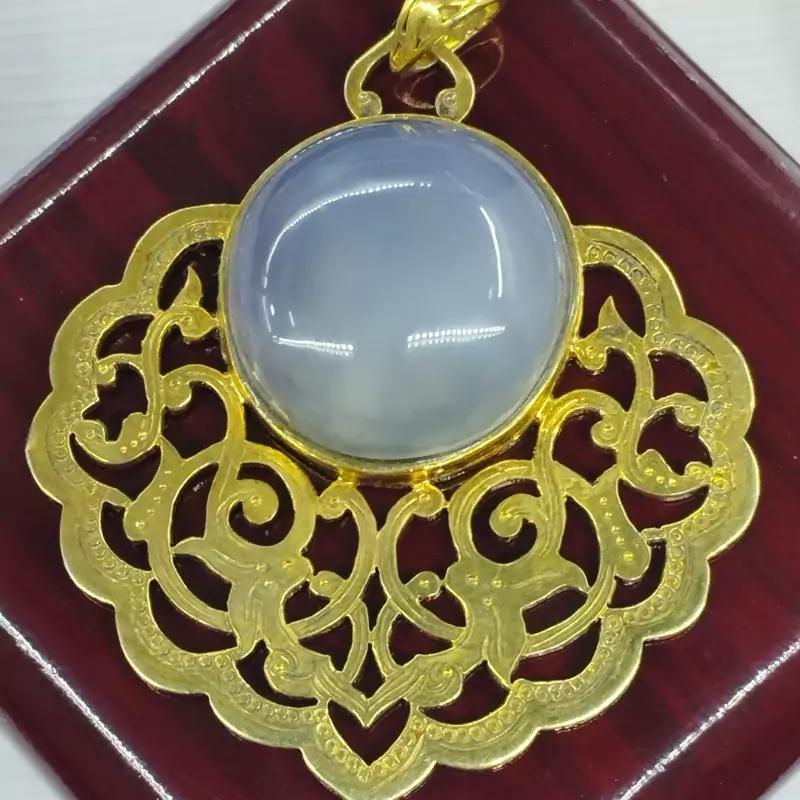 گردن آویز زنانه نقره با آبکاری طلا قلمزنی کاملا حرفه ای با عقیق کبود طبیعی و معدنی برند دُرسیم