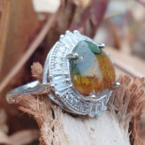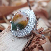 انگشتر نقره زنانه با آبکاری رادیوم و نگین اتمی.عقیق شجر پاییزه طبیعی .با ضمانت مکتوب اصالت.برند دُرسیم