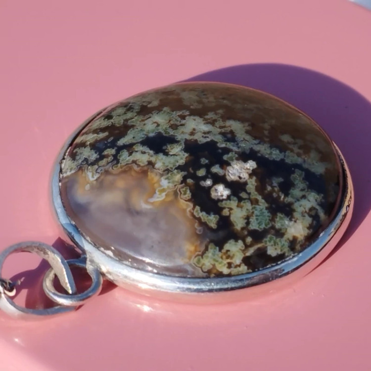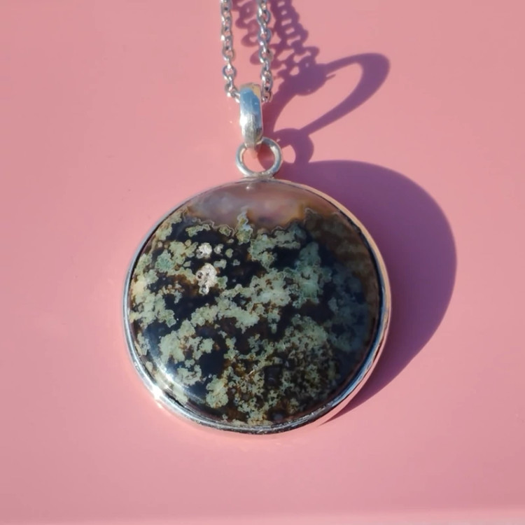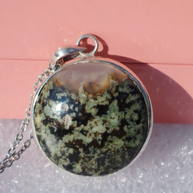 گردن آویز نقره زنانه مردانه عقیق منظره ای سبز صددرصد طبیعی با ضمانت مکتوب اصالت،برند دُرسیم