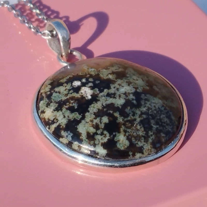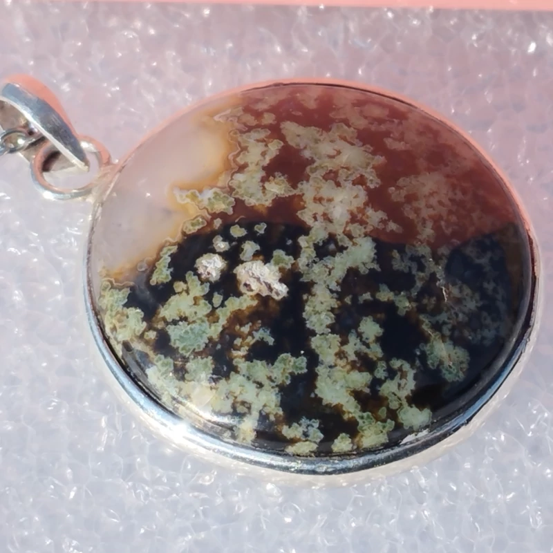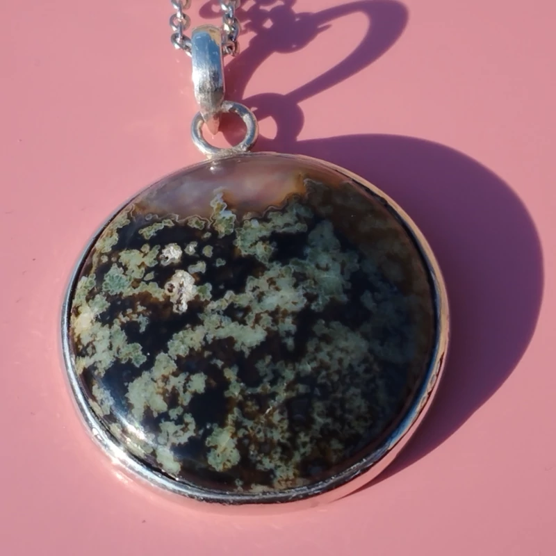 گردن آویز نقره زنانه مردانه عقیق منظره ای سبز صددرصد طبیعی با ضمانت مکتوب اصالت،برند دُرسیم