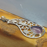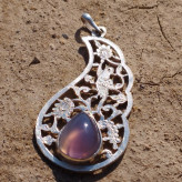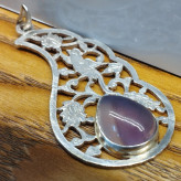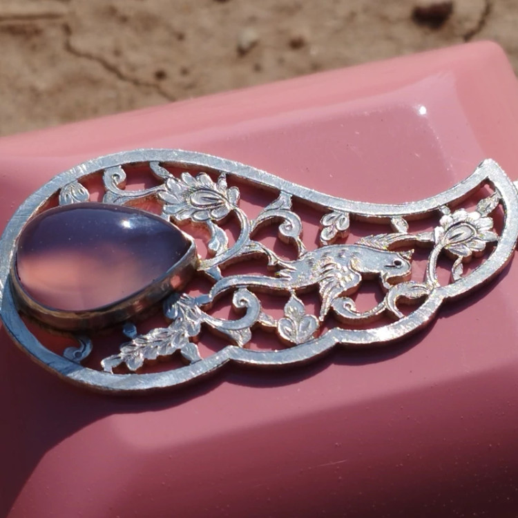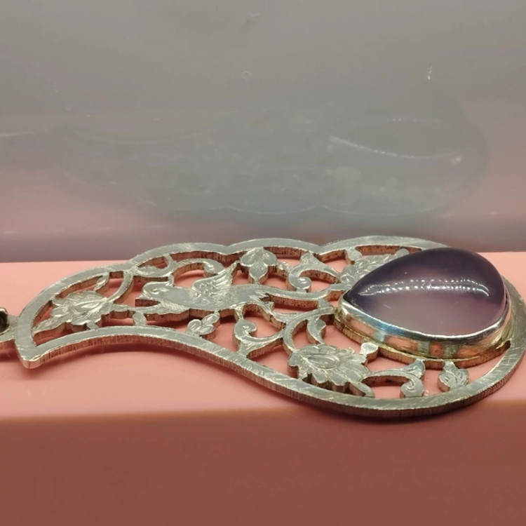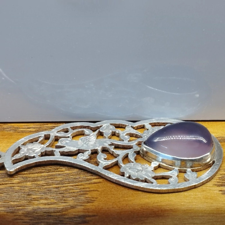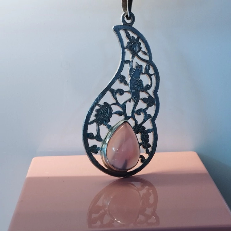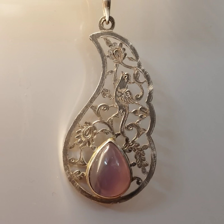 گردن آویز نقره قلمزنی زنانه طرح گل و مرغ ،عقیق سوسنی دو پوسته صددرصد طبیعی با ضمانت مکتوب اصالت ، برند دُرسیم