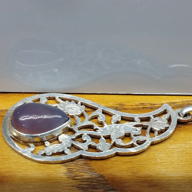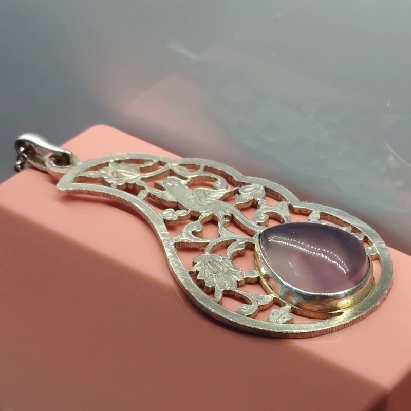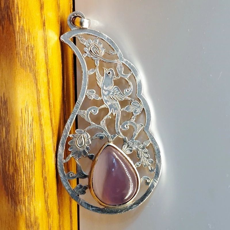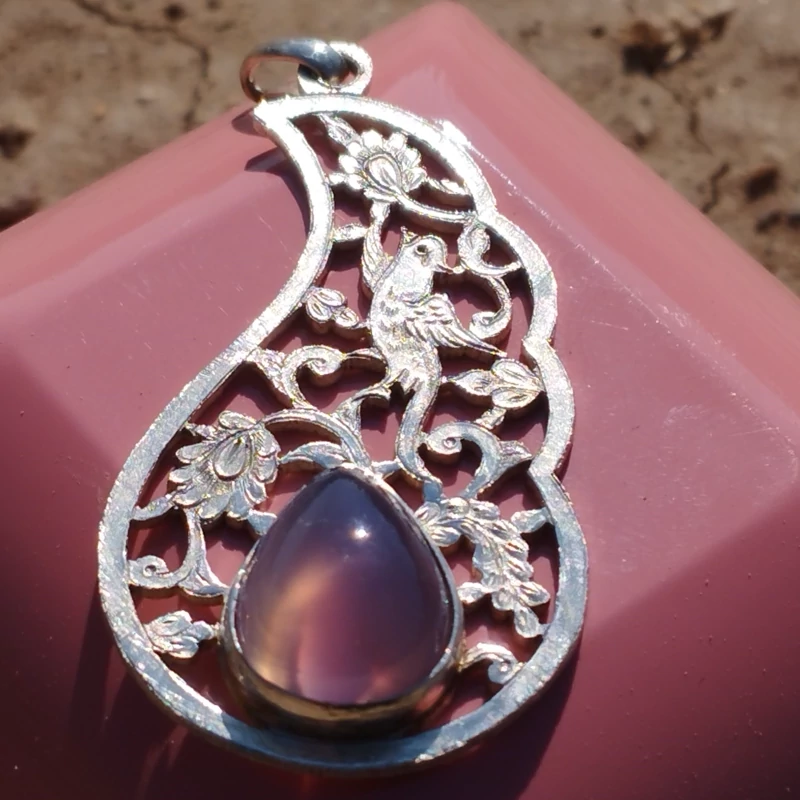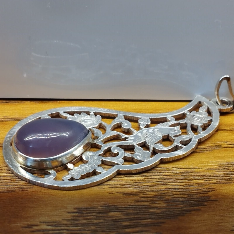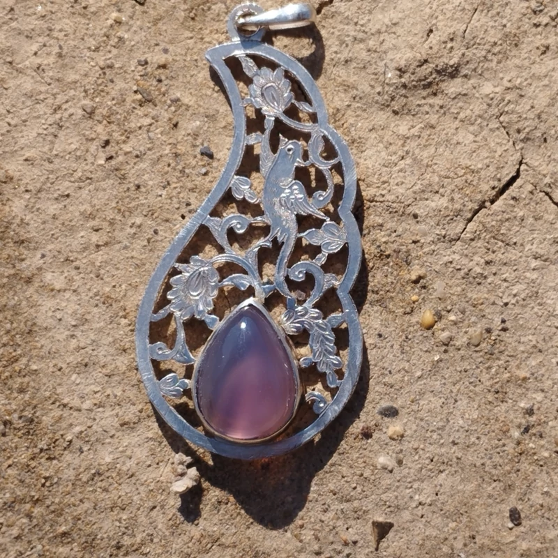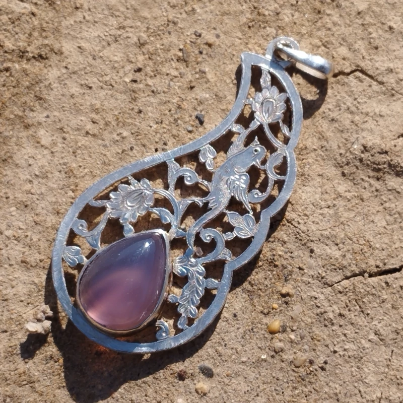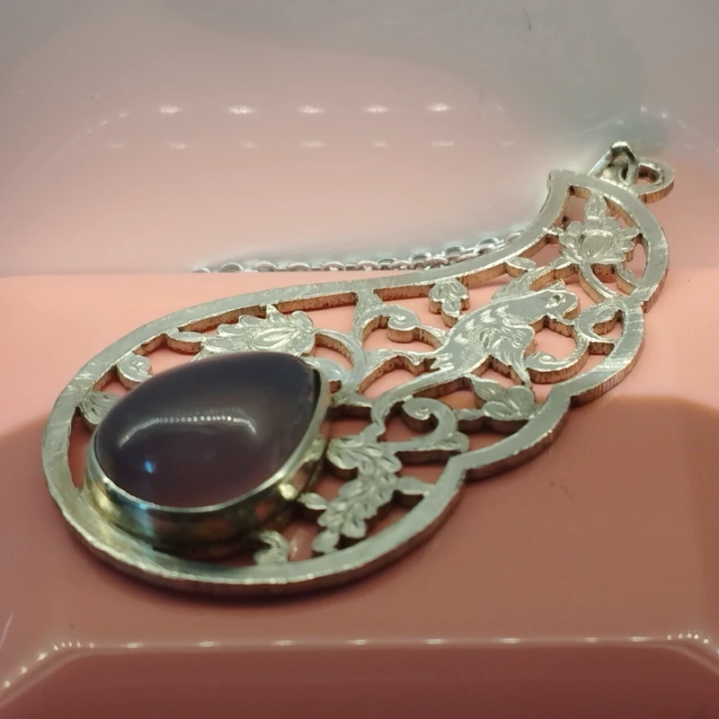 گردن آویز نقره قلمزنی زنانه طرح گل و مرغ ،عقیق سوسنی دو پوسته صددرصد طبیعی با ضمانت مکتوب اصالت ، برند دُرسیم