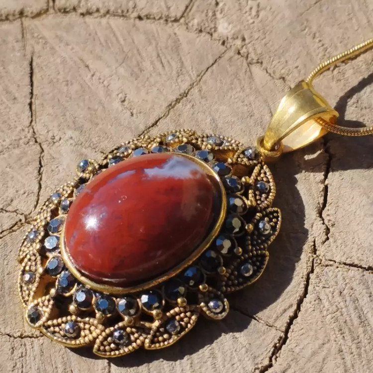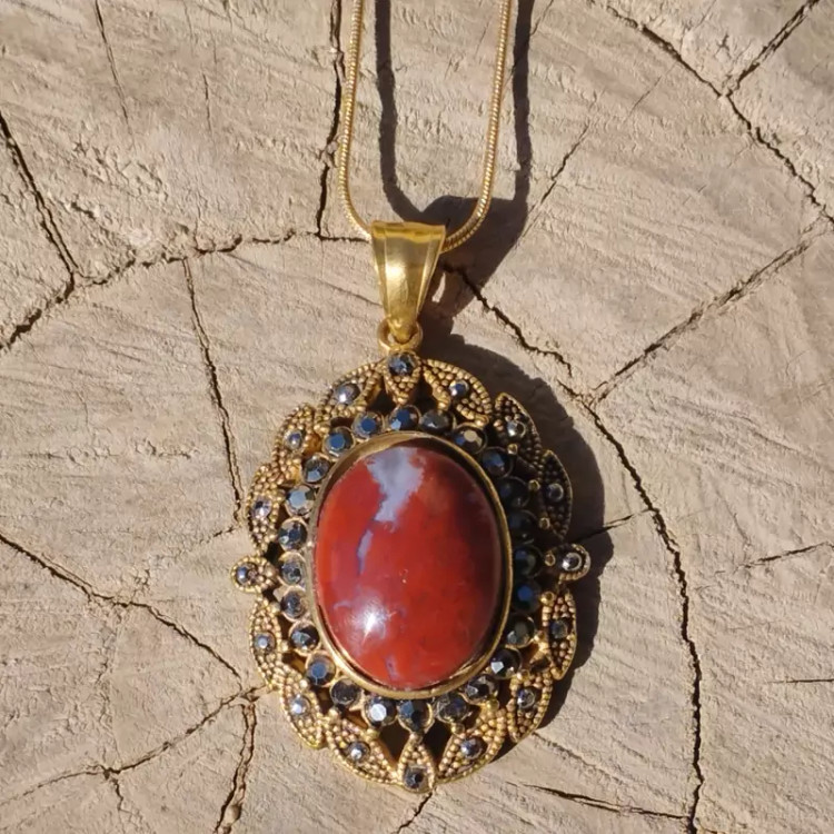 آویز استیل عقیق سرخ جاسپر خزه ای