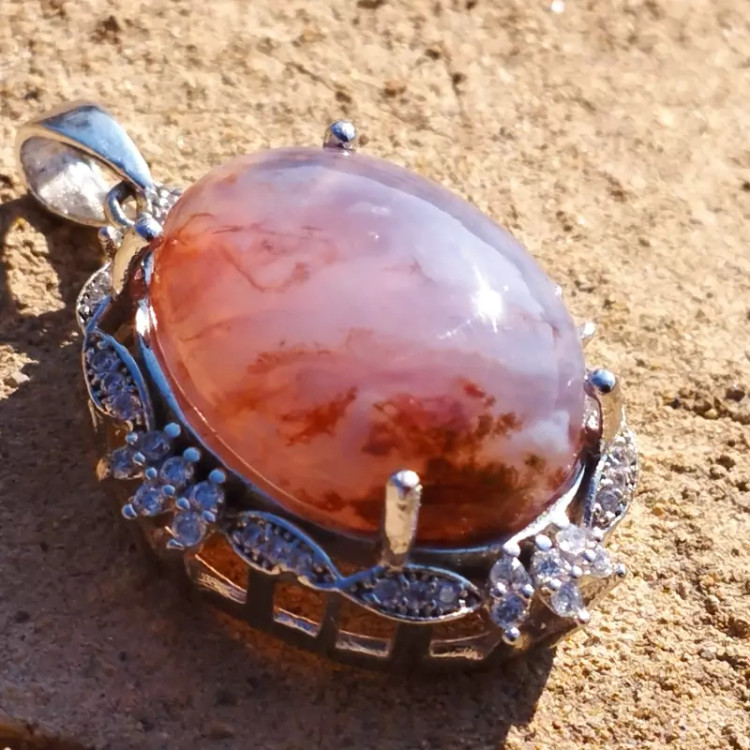 گردن آویز نقره نگین دار زنانه عقیق سوسنی طرحدار صددرصد طبیعی با ضمانت مکتوب اصالت،برند دُرسیم