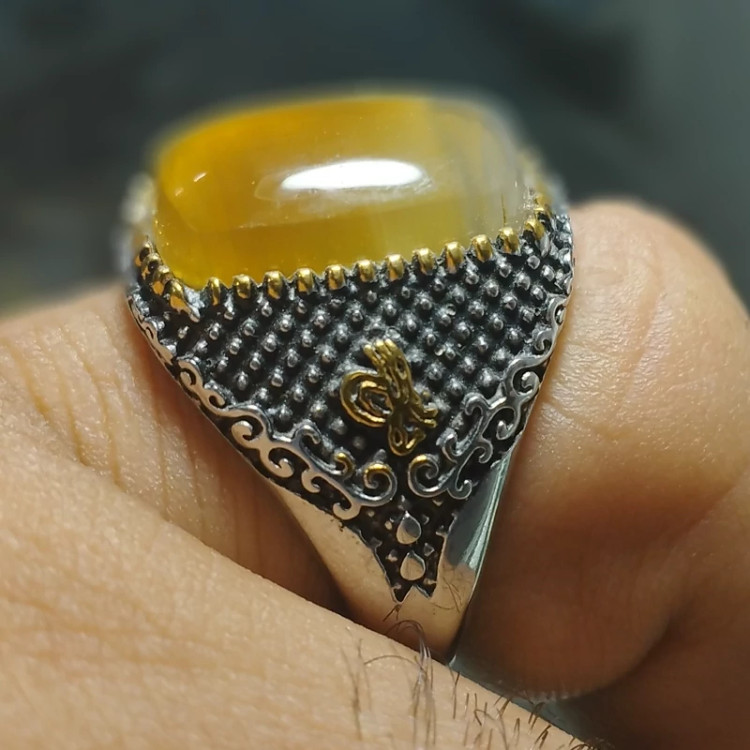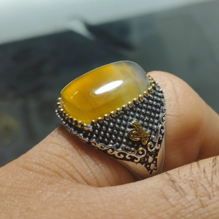 انگشتر استیل عقیق مردانه زرد شرف الشمس طبیعی و معدنی