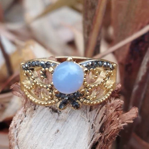 انگشتر استیل زنانه رنگ ثابت با عقیق آبی صددرصد طبیعی .با ضمانت مکتوب اصالت.برند دُرسیم