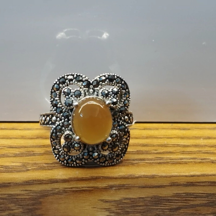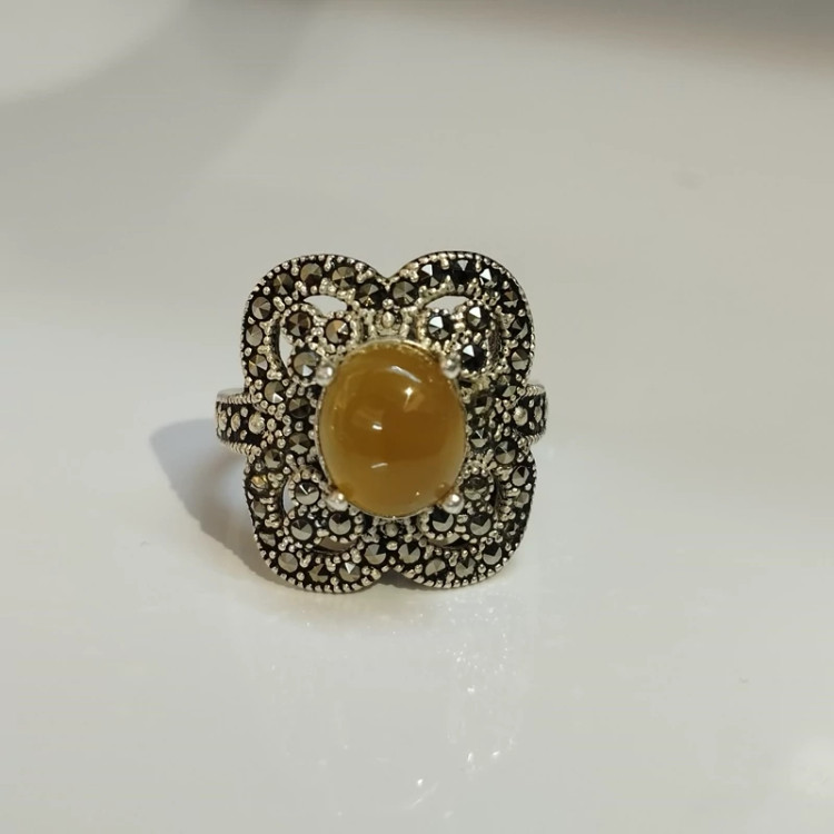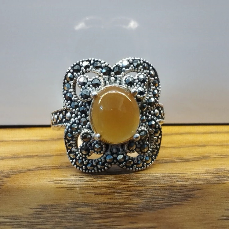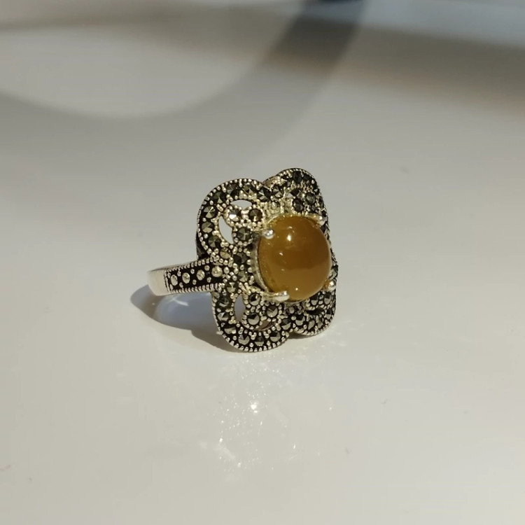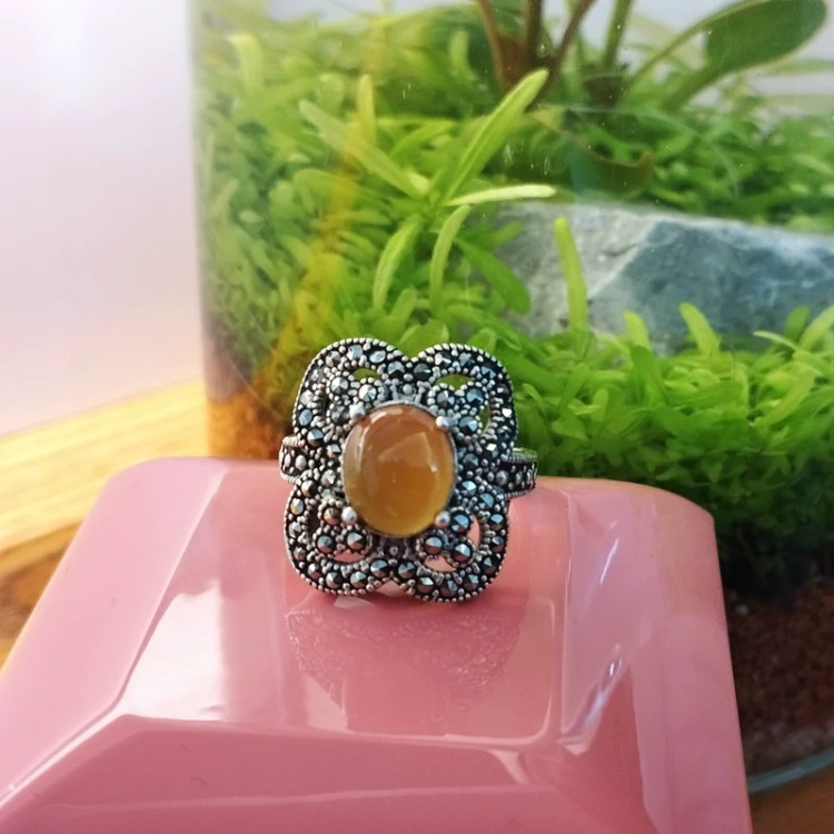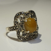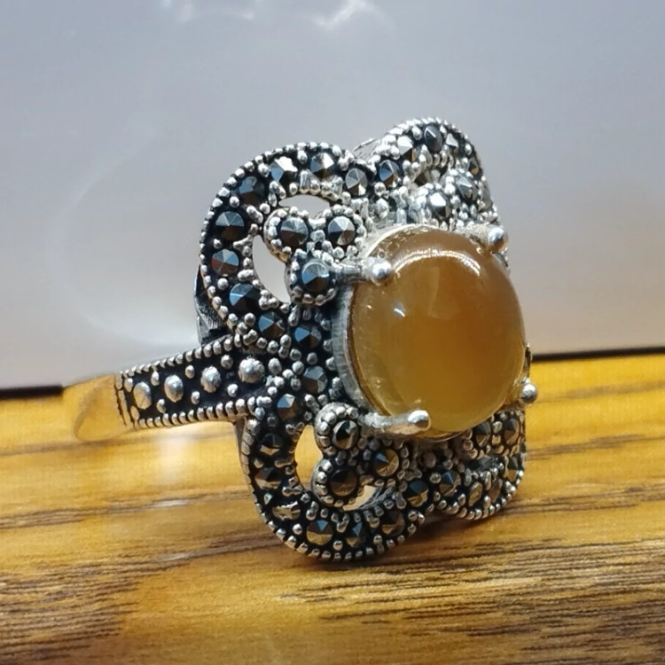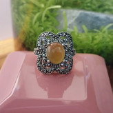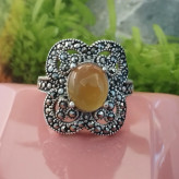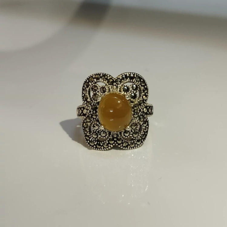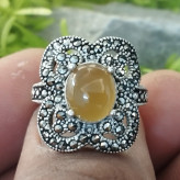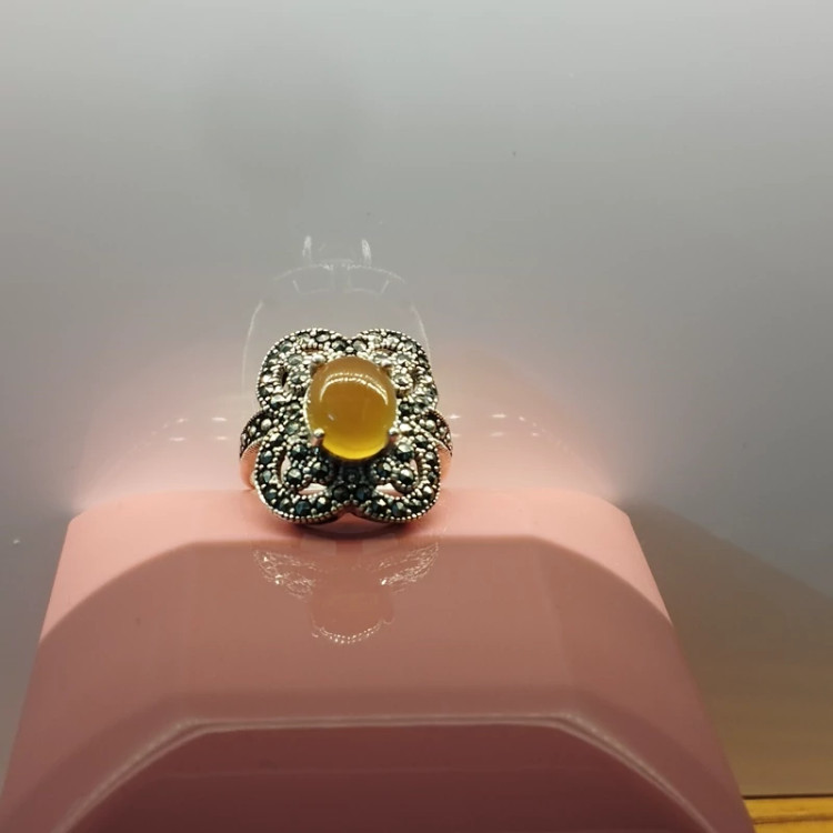 انگشتر نقره زنانه نگین مارکازیت،عقیق زرد (شرف شمس) صددرصد طبیعی با ضمانت مکتوب اصالت،برند دُرسیم