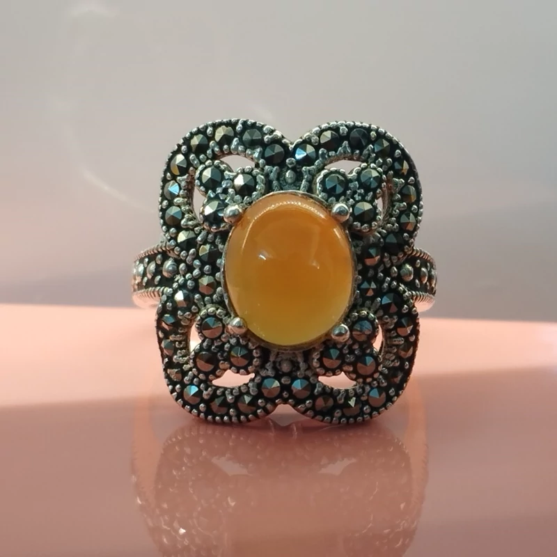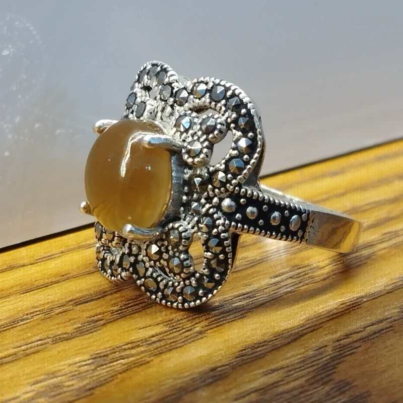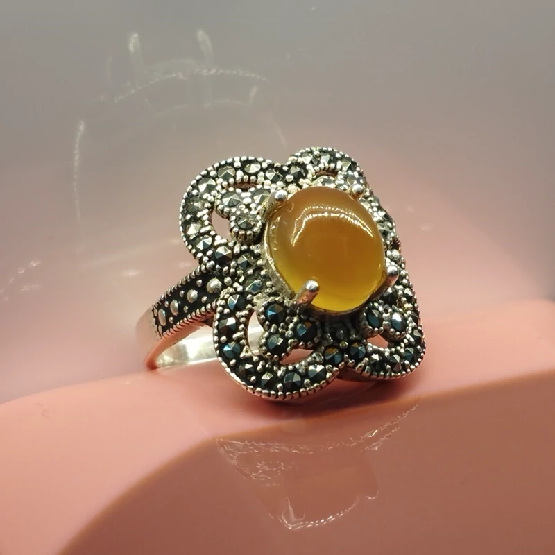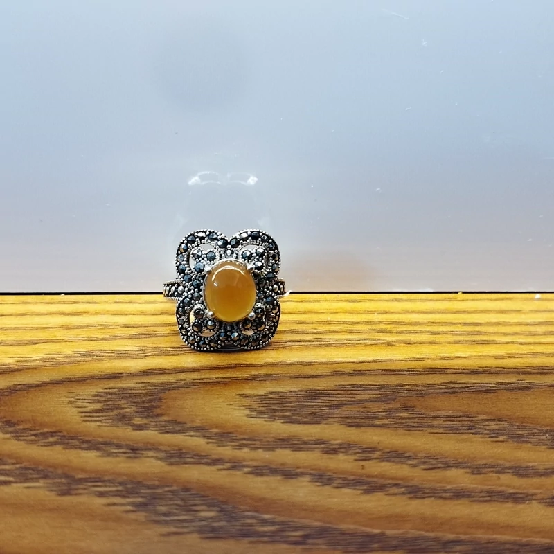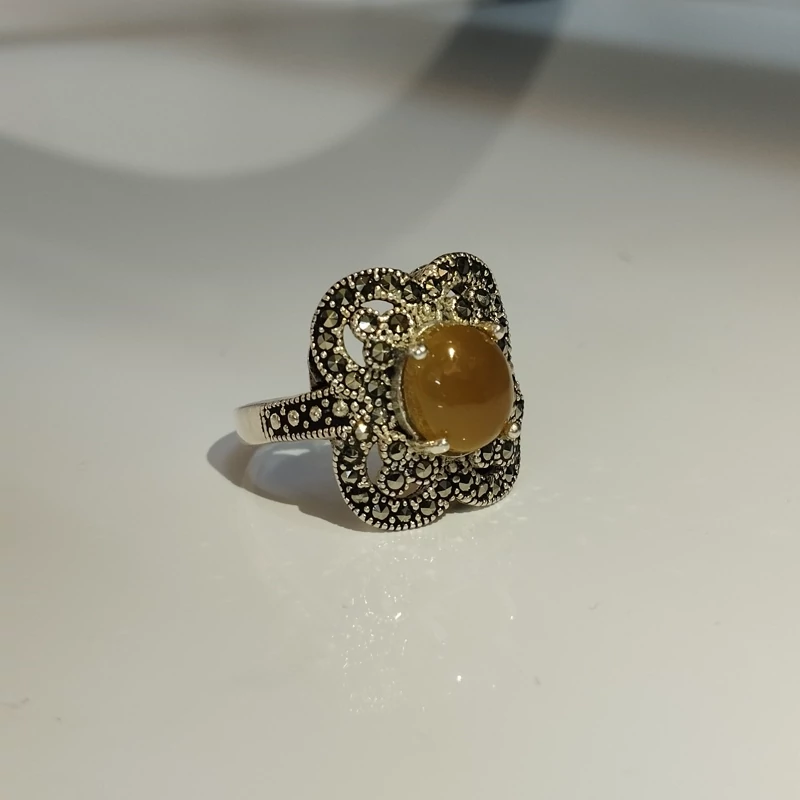 انگشتر نقره زنانه نگین مارکازیت،عقیق زرد (شرف شمس) صددرصد طبیعی با ضمانت مکتوب اصالت،برند دُرسیم