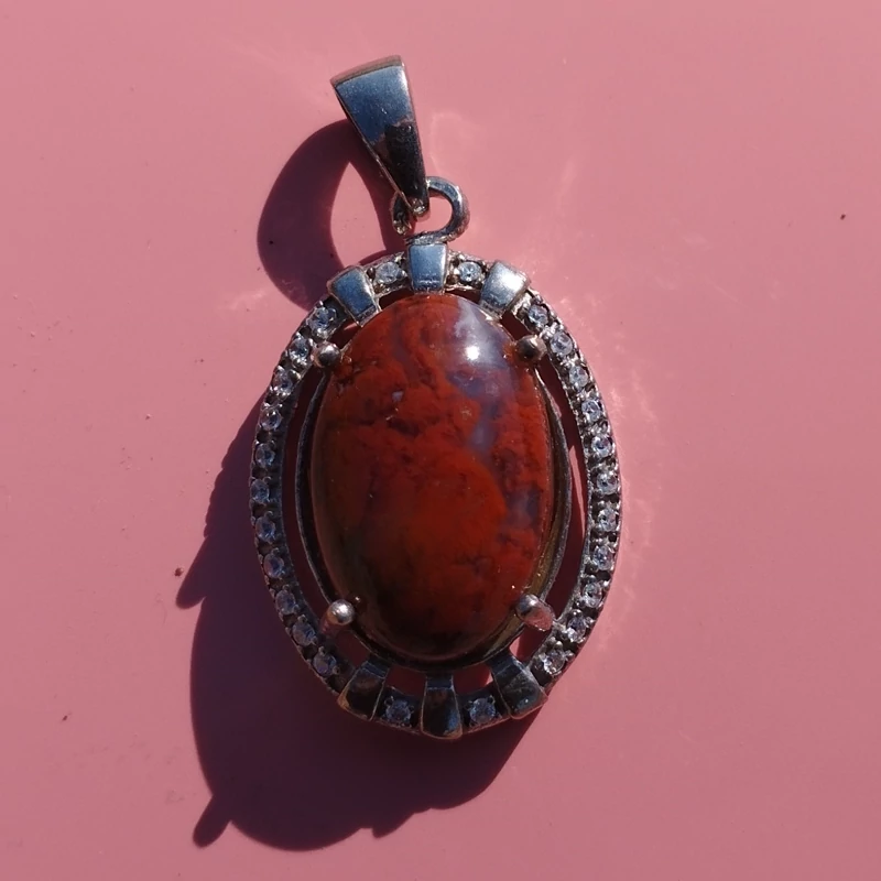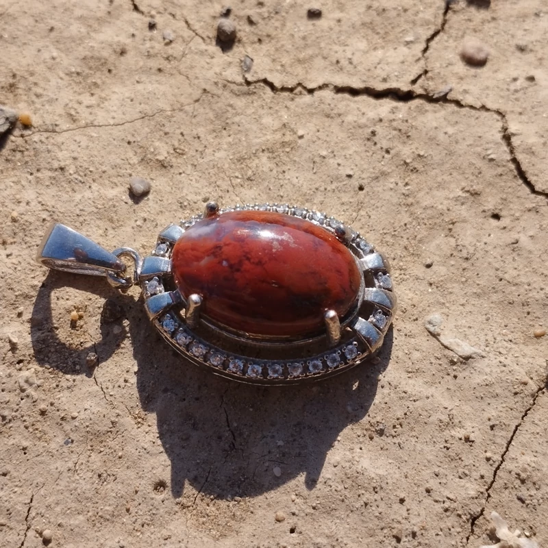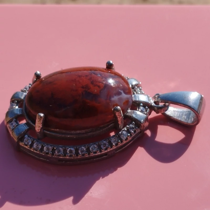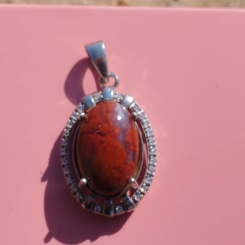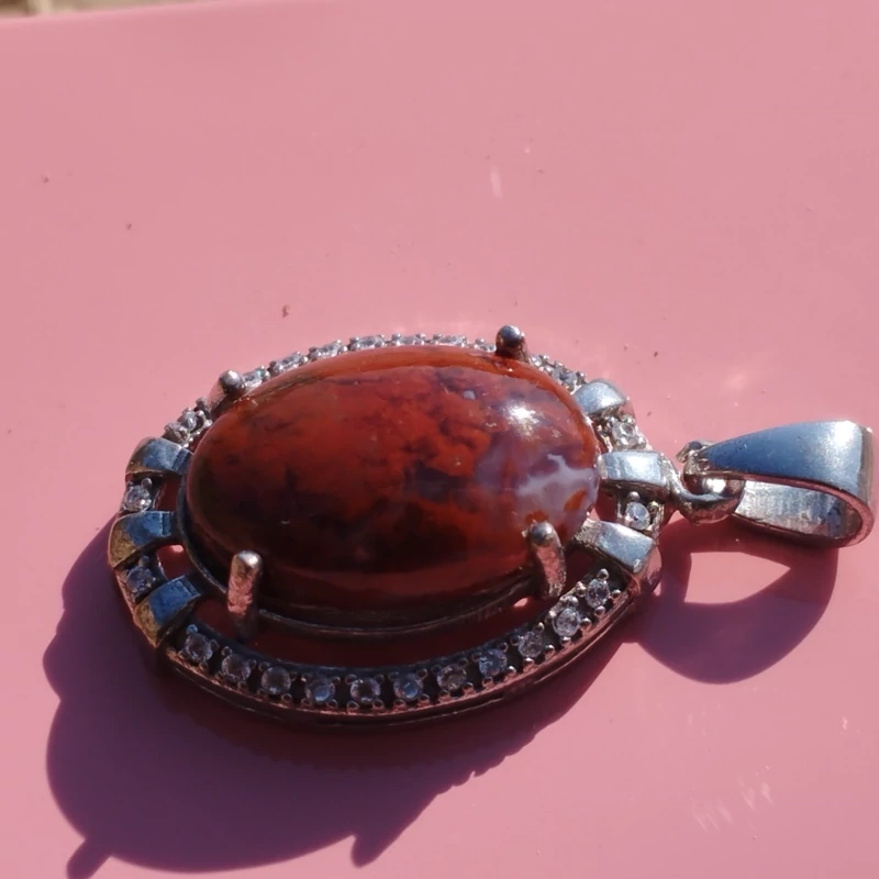 گردن آویز نقره زنانه نگین دار عقیق سرخ خزه ای با ضمانت مکتوب اصالت ،برند دُرسیم