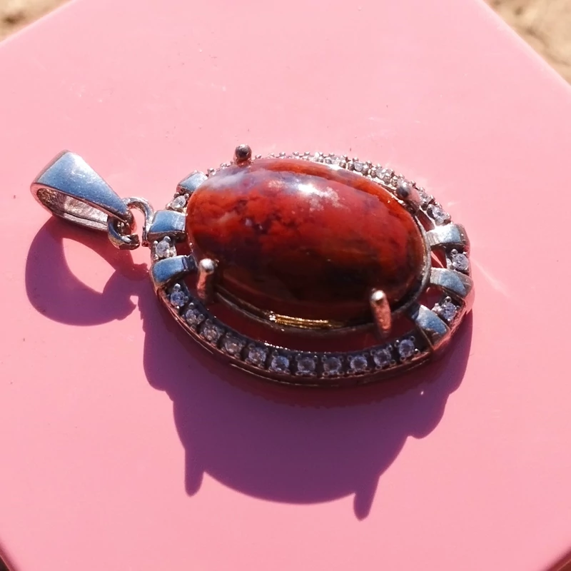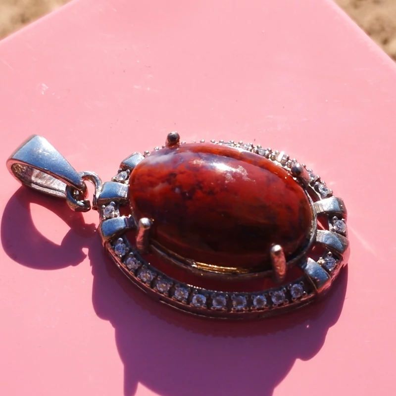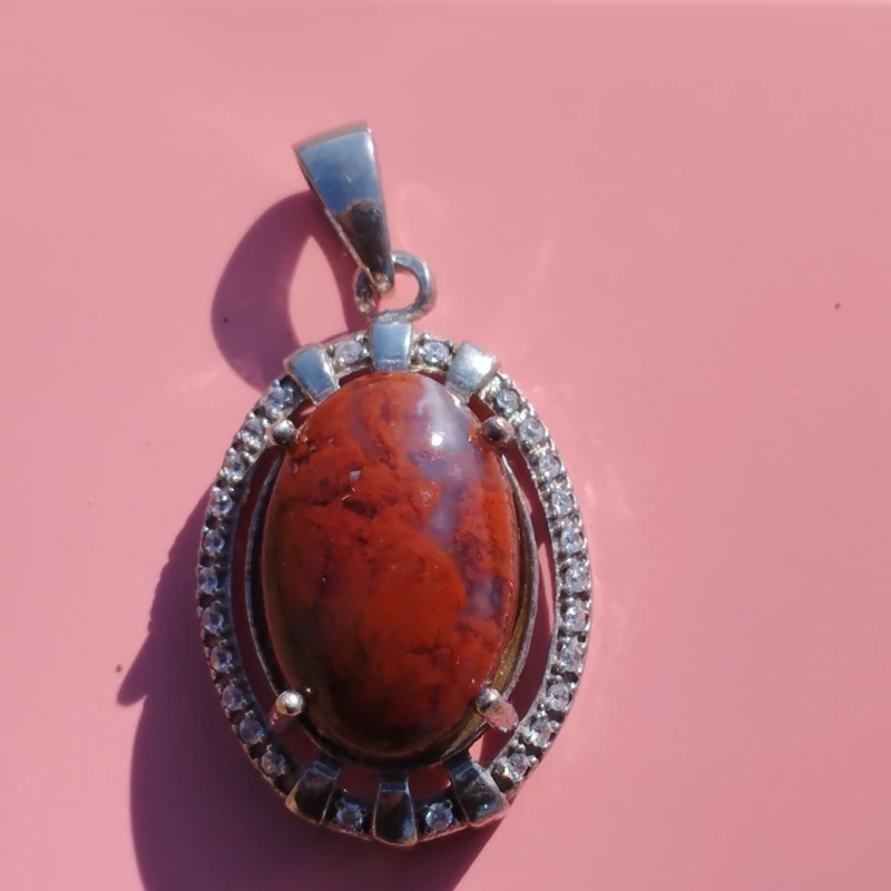 گردن آویز نقره زنانه نگین دار عقیق سرخ خزه ای با ضمانت مکتوب اصالت ،برند دُرسیم