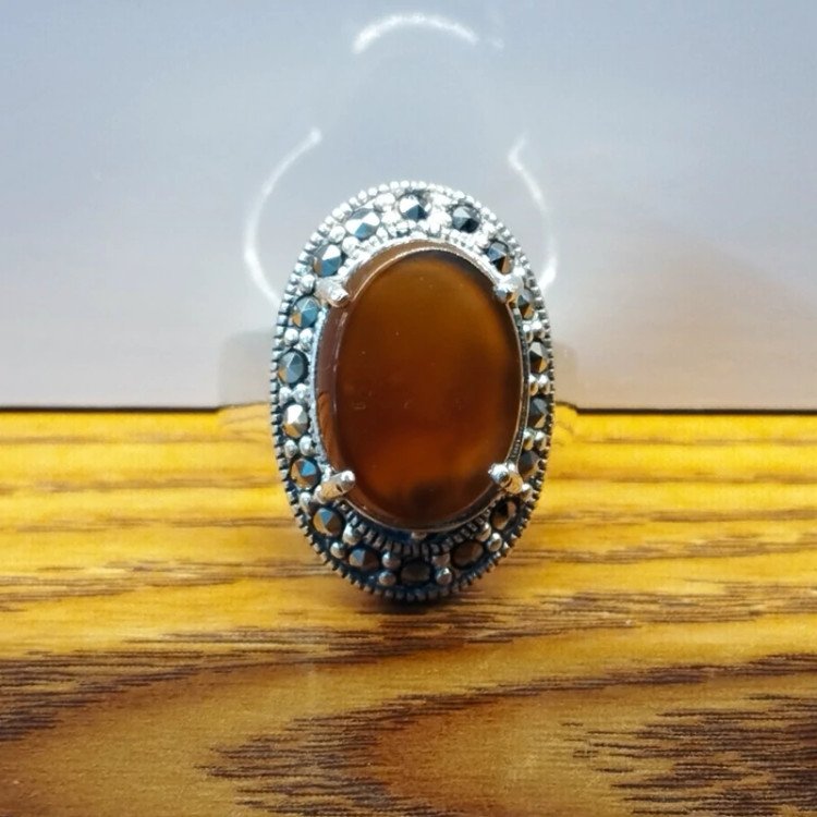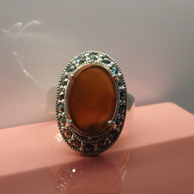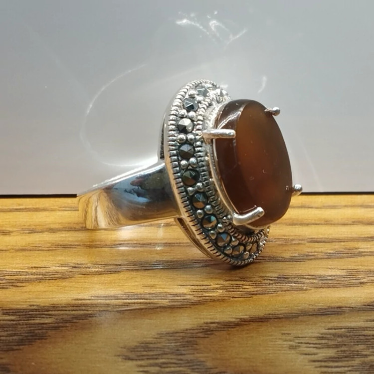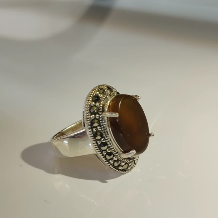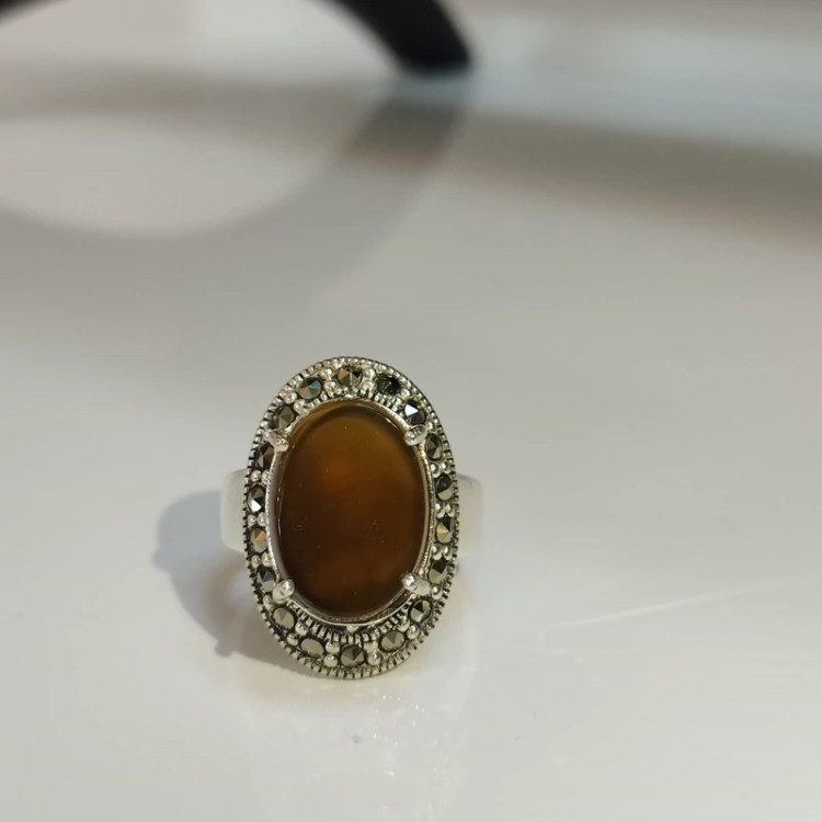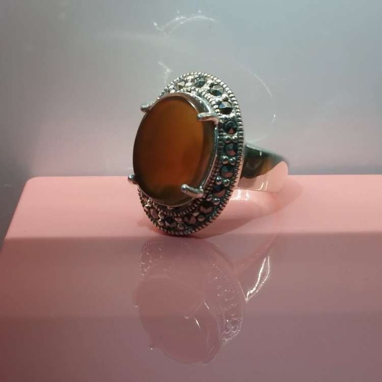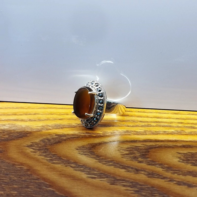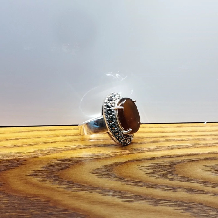 انگشتر نقره زنانه با نگین مارکازیت ،عقیق خرمایی صددرصد طبیعی با ضمانت مکتوب اصالت،برند دُرسیم